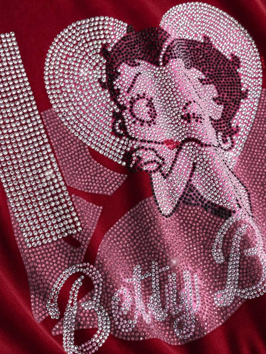 Betty Boop | ROMWE Y2K Samt Sweatshirt & Hose Set mit Buchstaben Grafik und Strass Verzierung, 2 Stücke für Damen