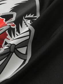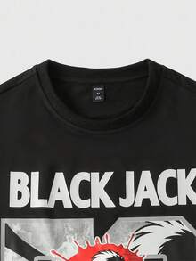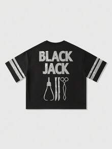 Black Jack X ROMWE Herren lässiges, locker geschnittenes T-Shirt mit Cartoon-Figur- und Buchstaben-Grafik, Drop-shoulder, Sommermoden