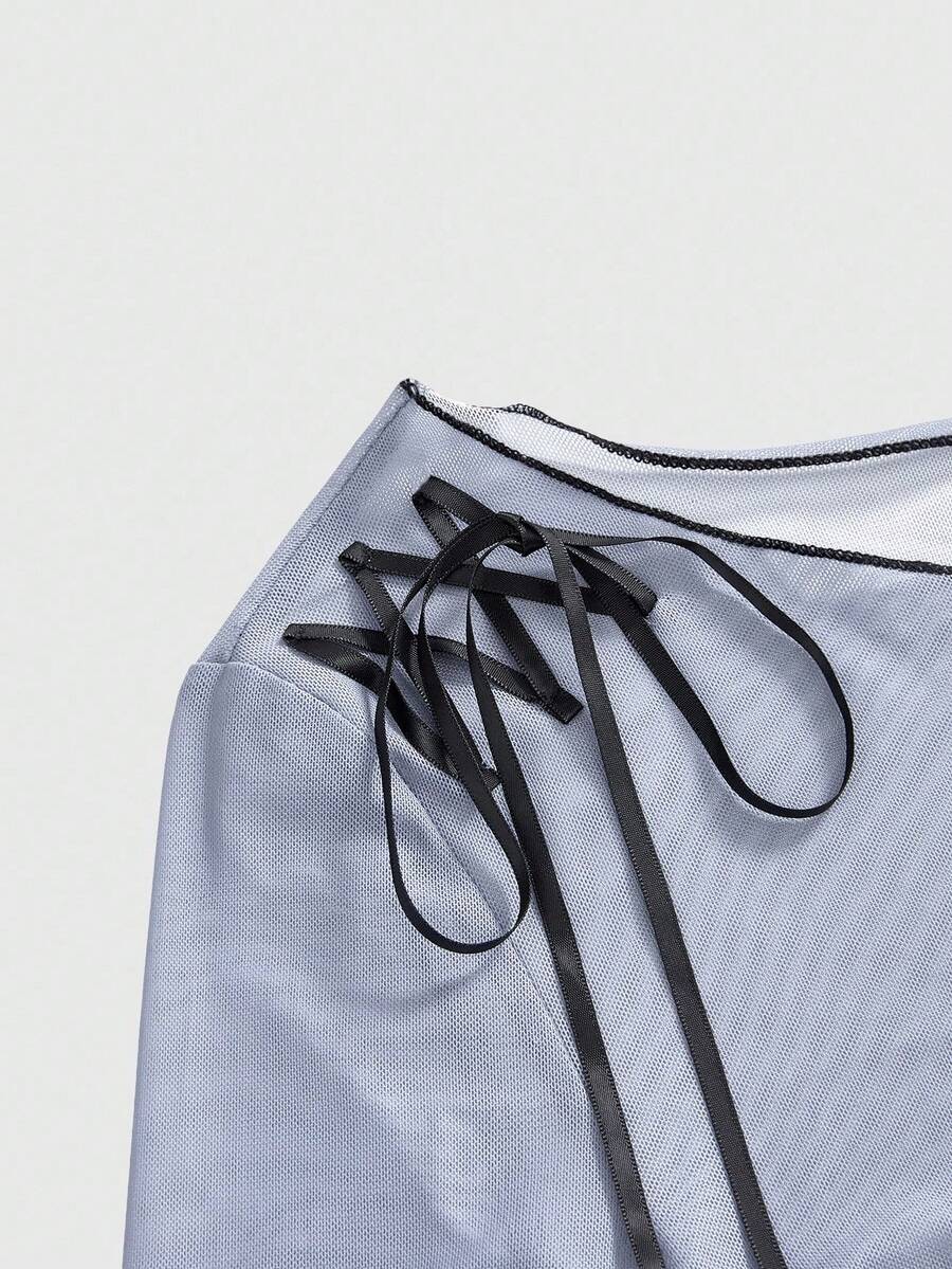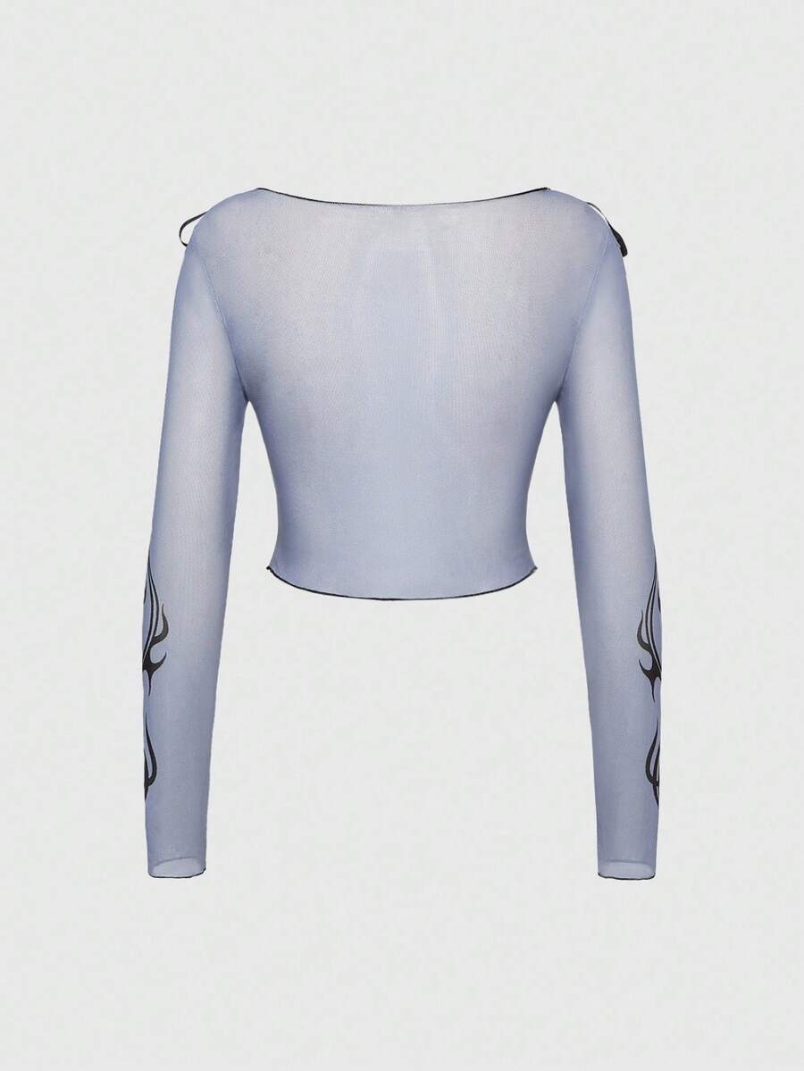 Black Jack X ROMWE Damen Figurmotiv Transparentes Mesh Top