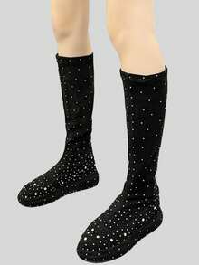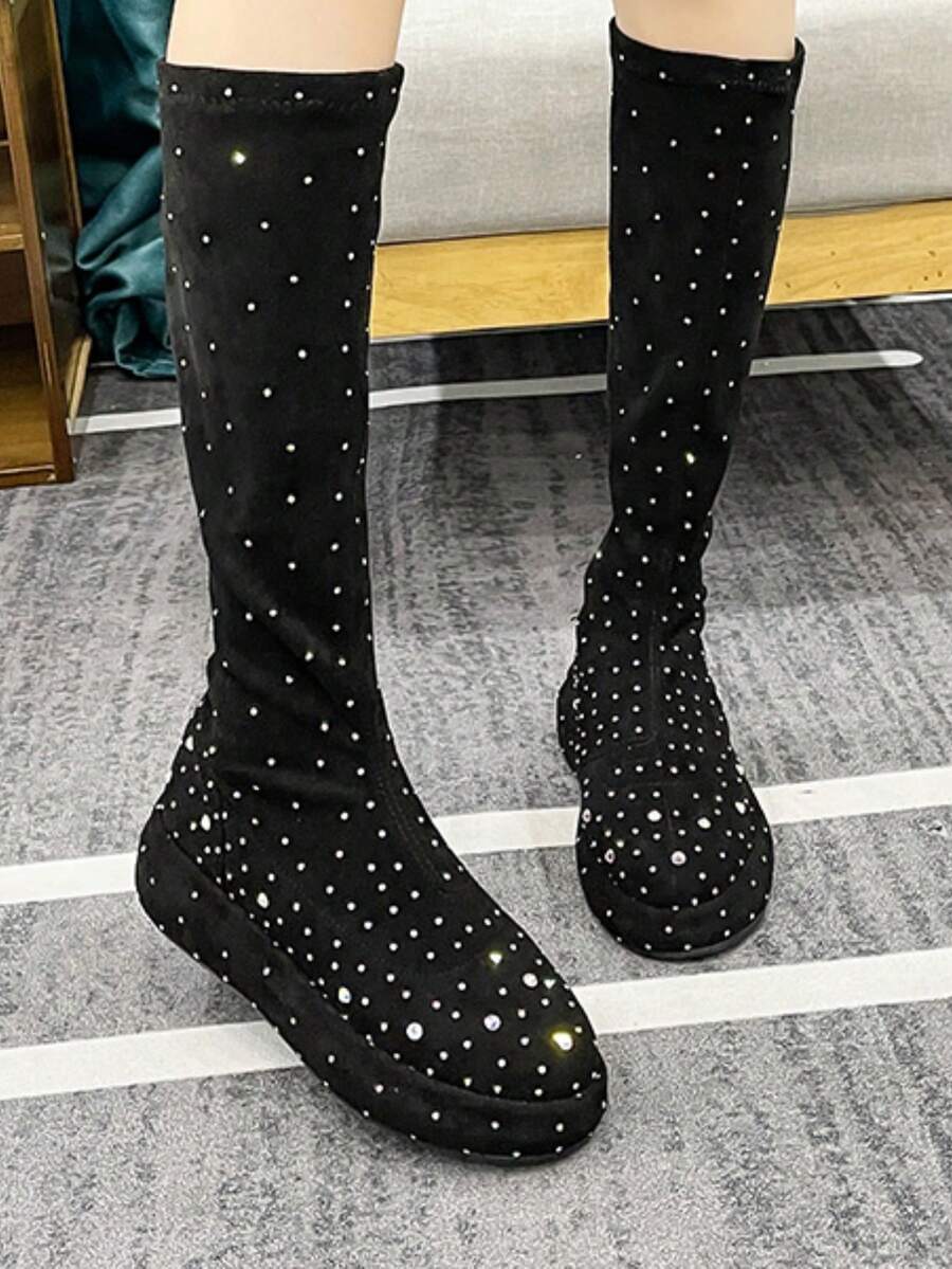 Schwarze High Top-Stiefel mit dicker Sohle und Strassverzierung für Damen