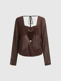 Grunge Punk Vintage Punk Metall Ösen Design Tiefer Ausschnitt Schlitz Saum Figurbetontes Langarm T-Shirt
