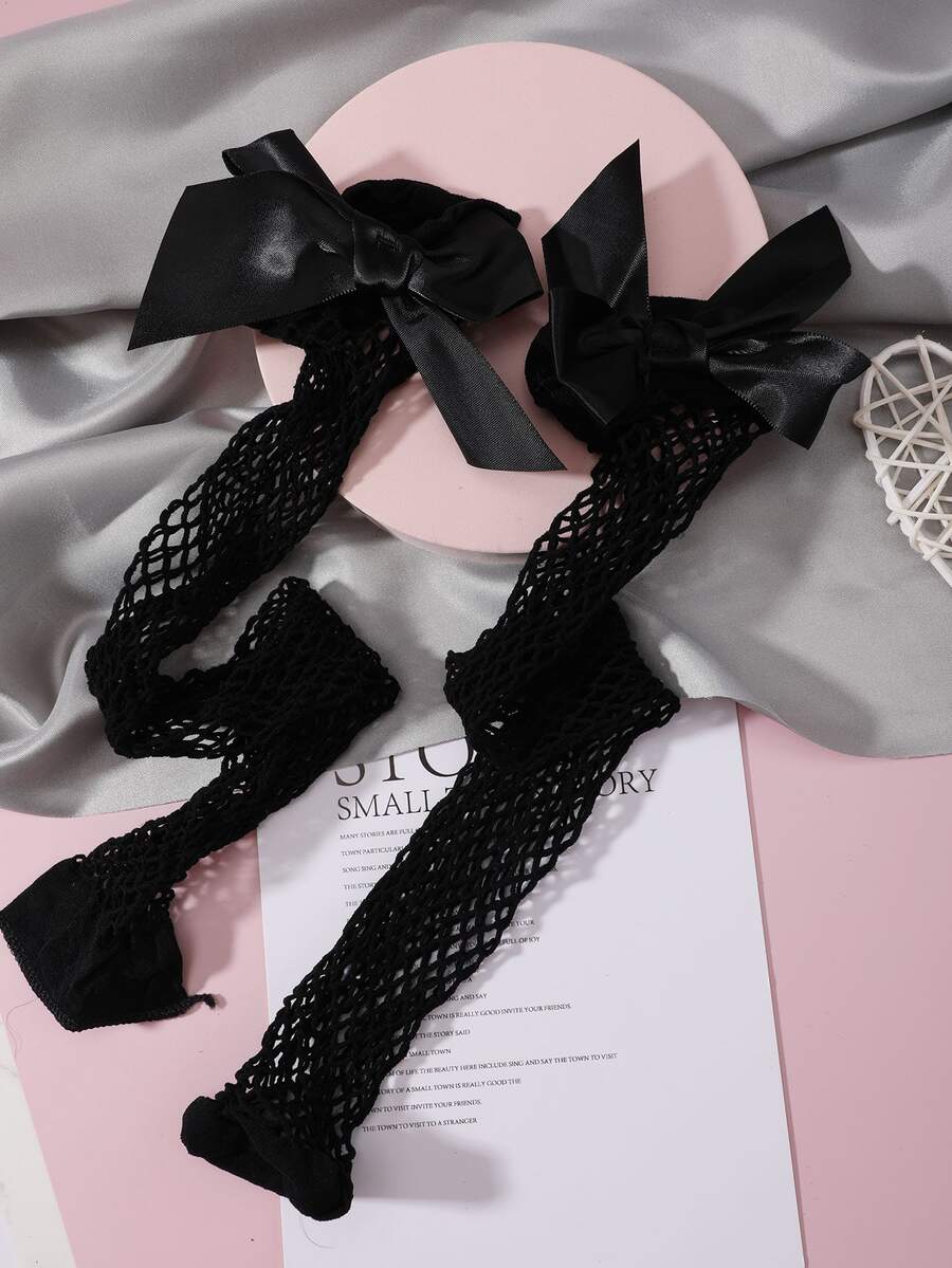Over-the-Knee Strümpfe mit Schleife Dekor, Fischnetz