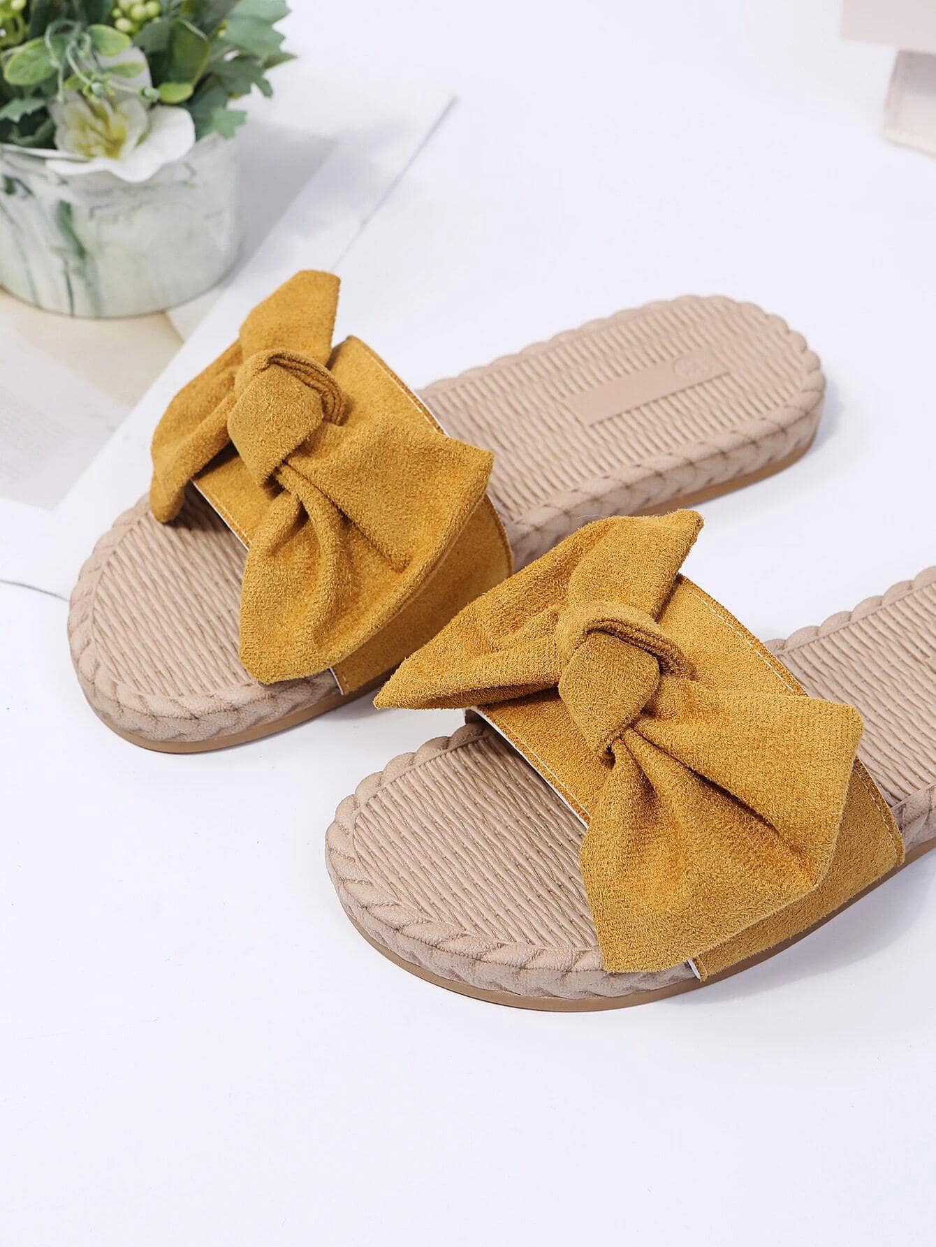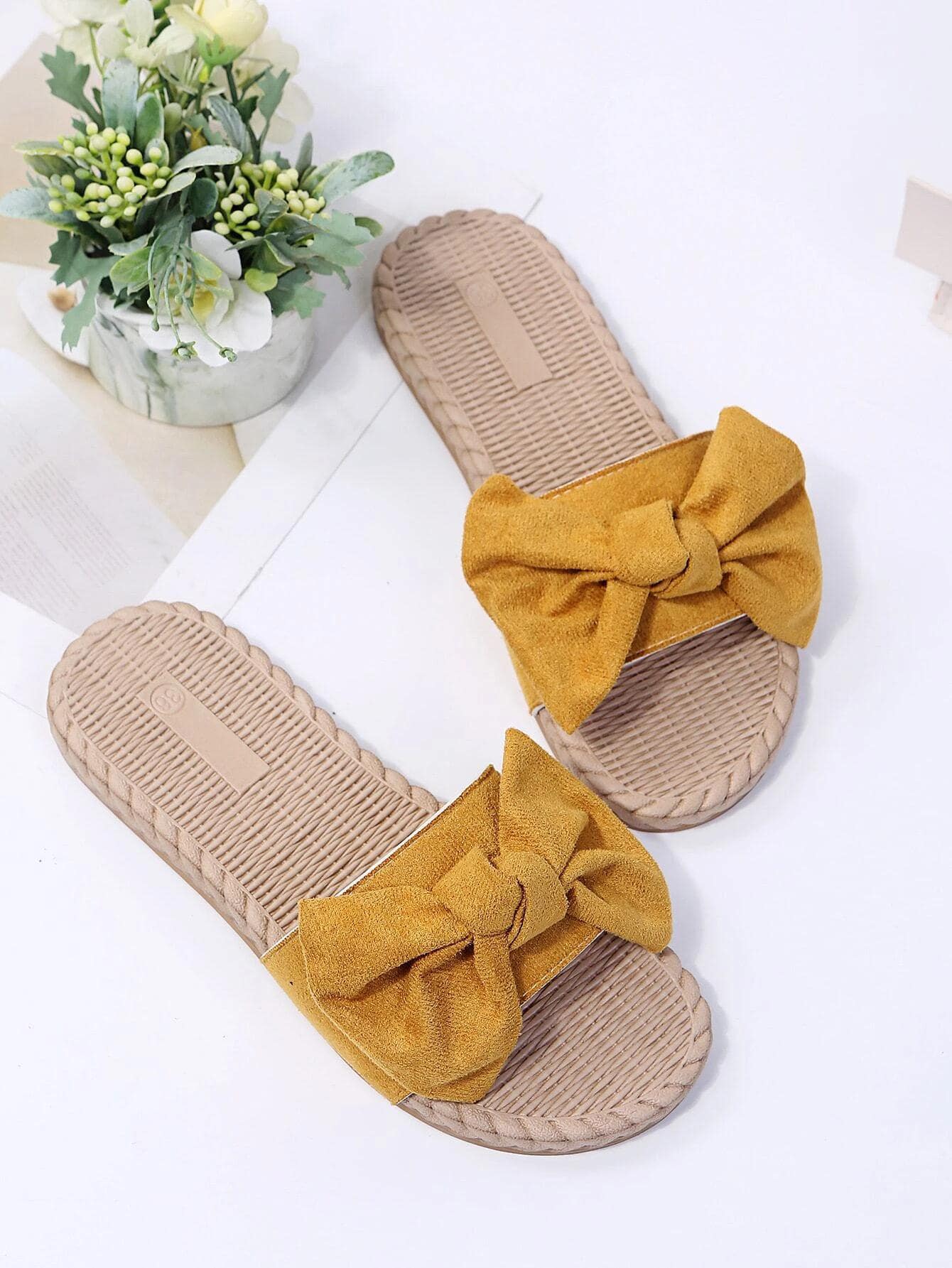 Flache Sandalen mit Schleife Dekor