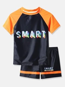 Zweiteiliger Badeanzug mit Buchstaben Grafik