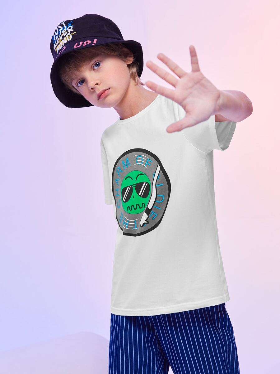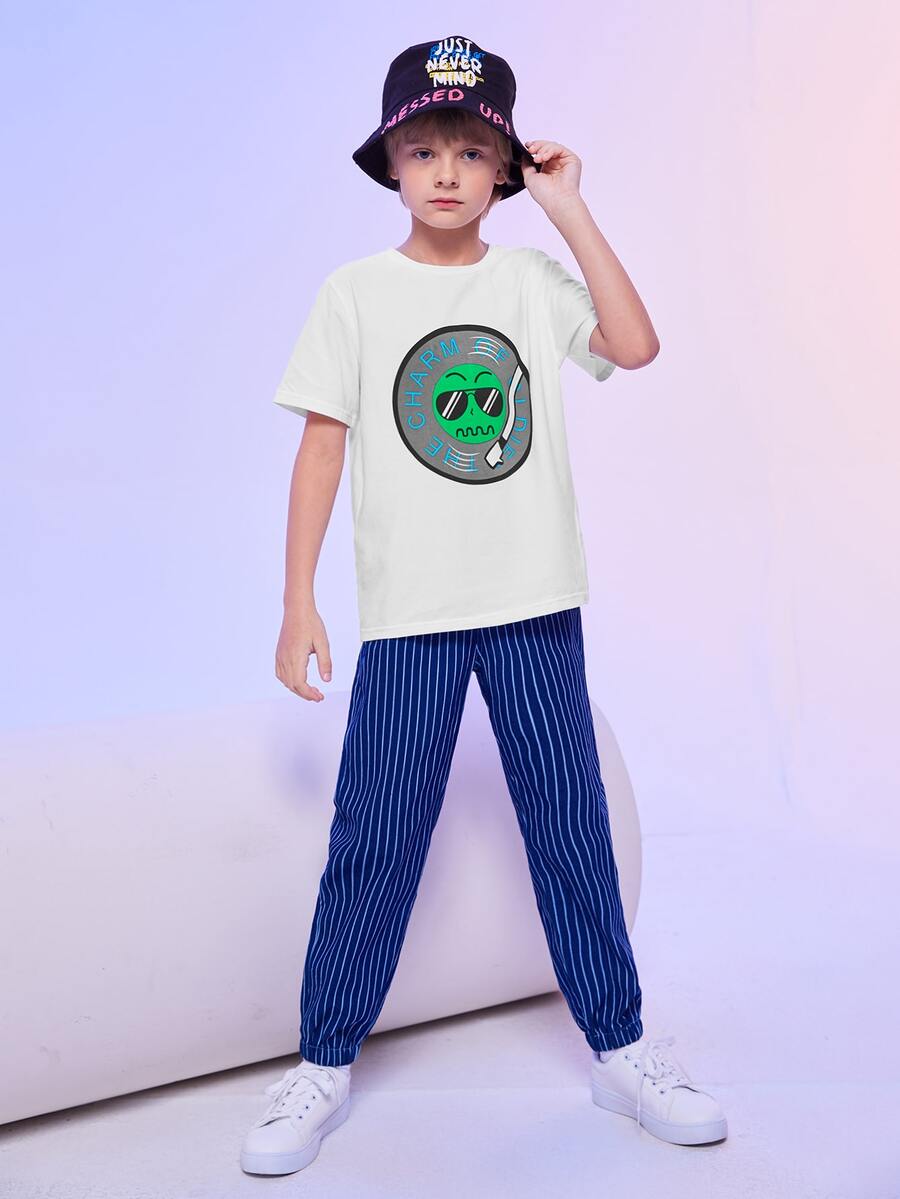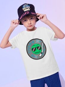 T-Shirt mit Buchstaben und Karikatur Grafik