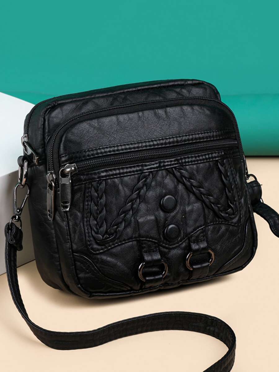 Goth Quadratische Tasche mit geflochtenem Detail, Mini Vintage, Schwarz