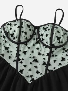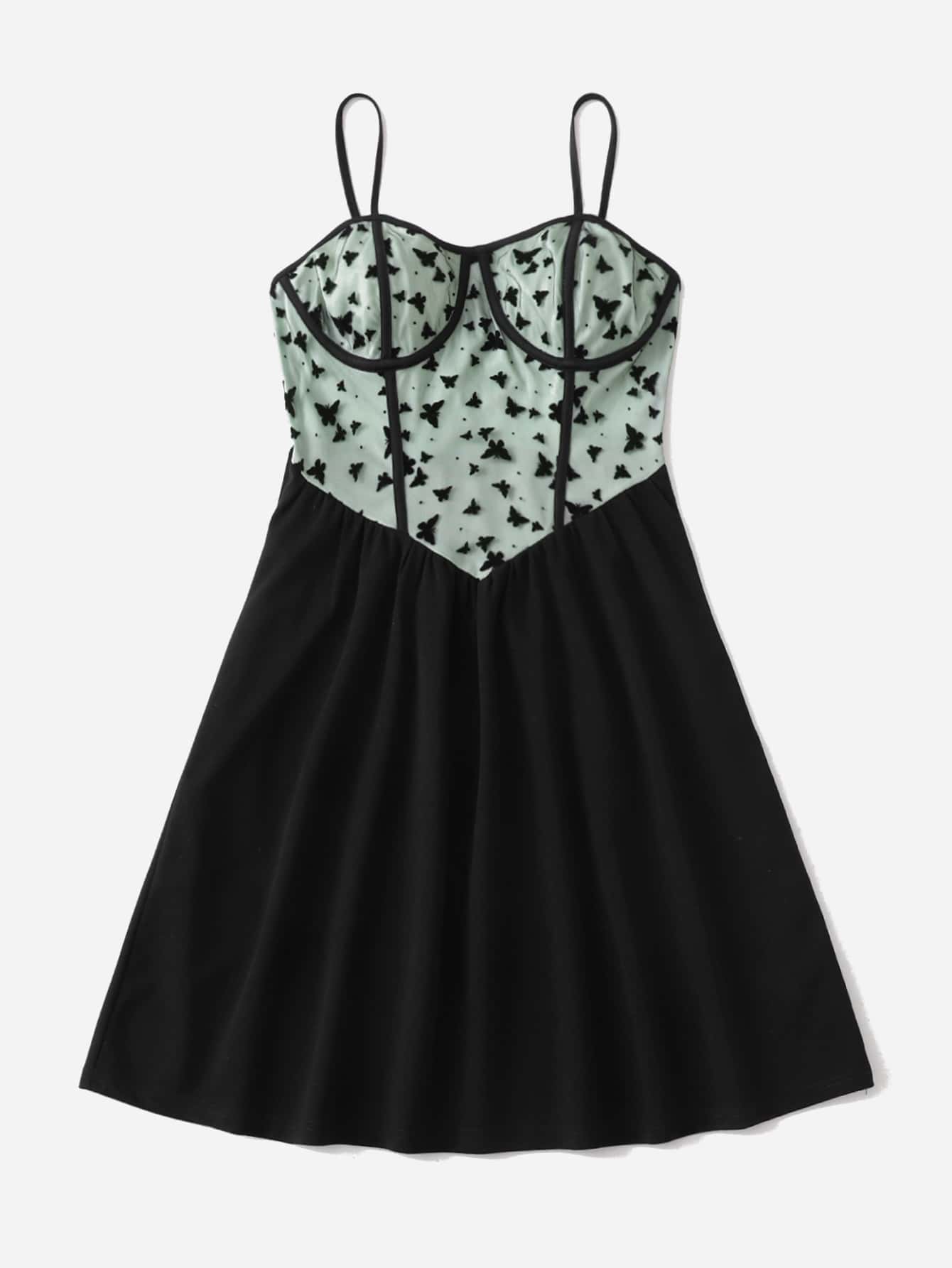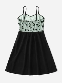Cami Kleid mit Schmetterling Grafik, Kontrastsaum