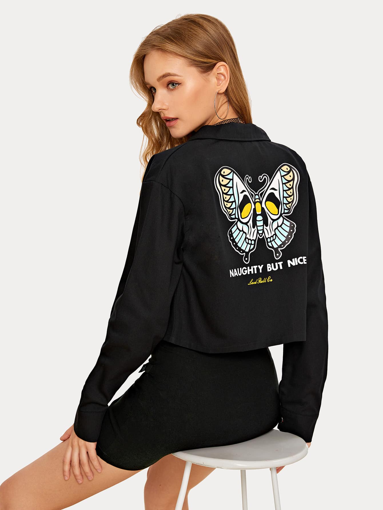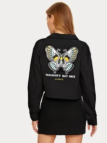 Jacke mit Schmetterling, Buchstaben Grafik und Einreihig