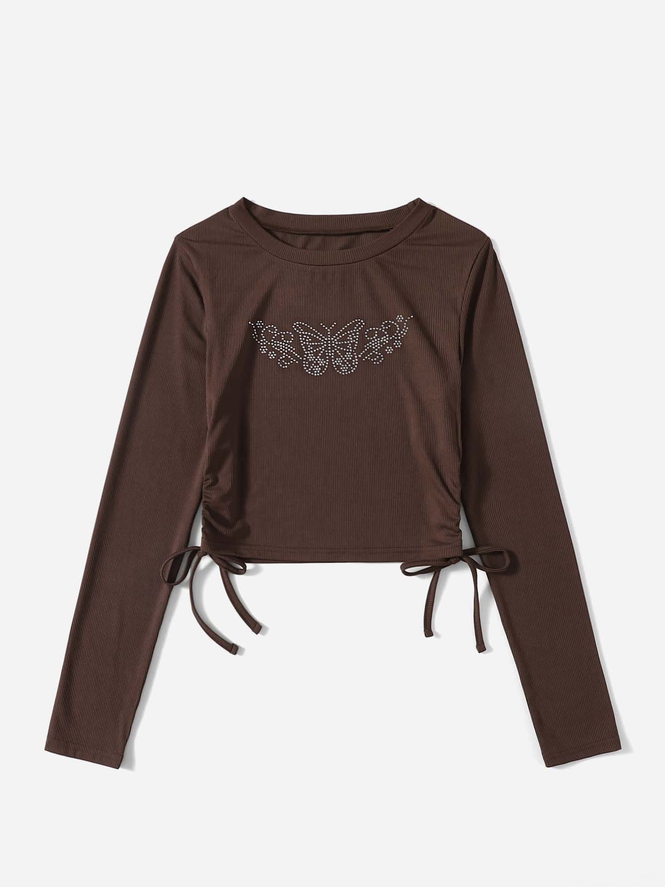 T-Shirt mit Schmetterling Strass, Tunnelzug
