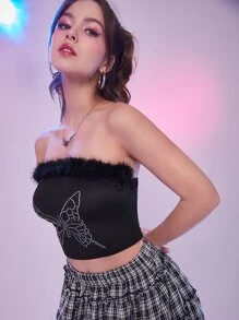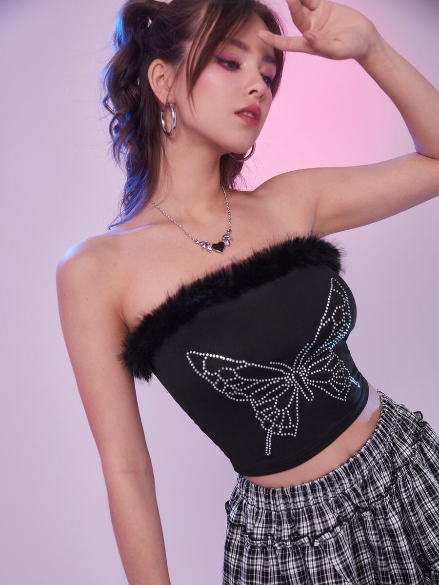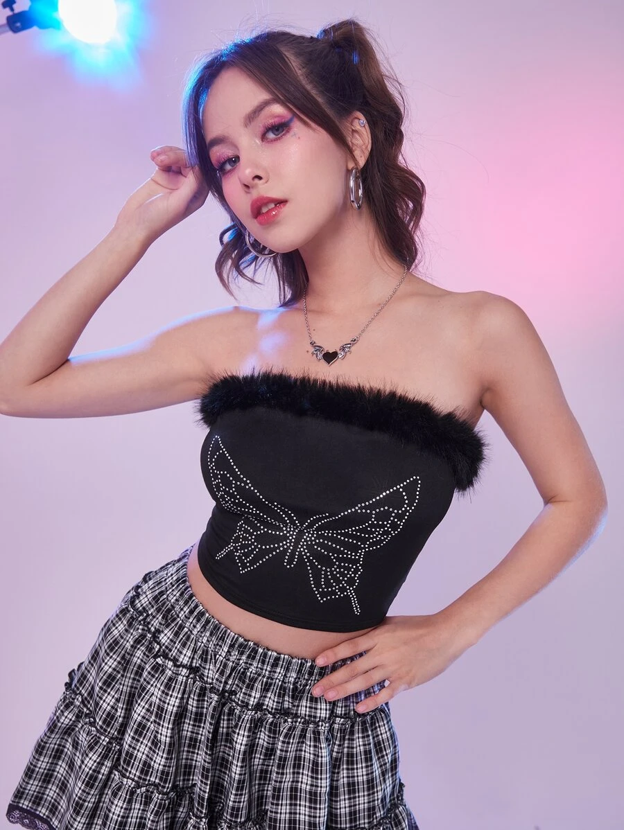 Crop Tube Top mit Schmetterling Strass, fusselig