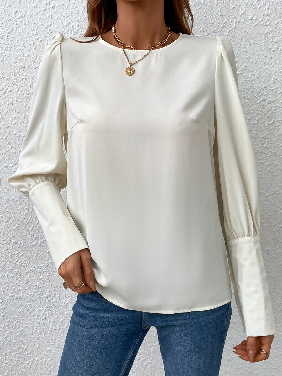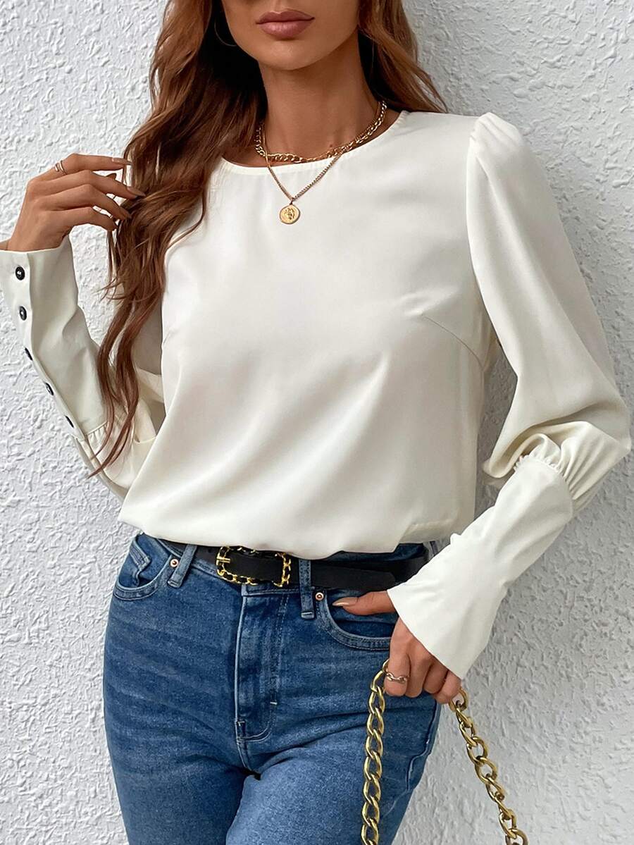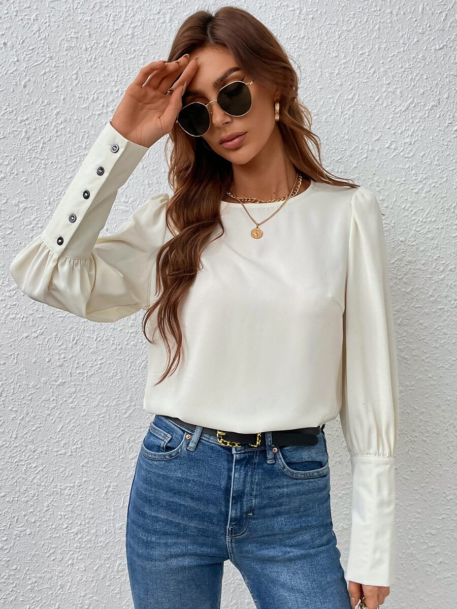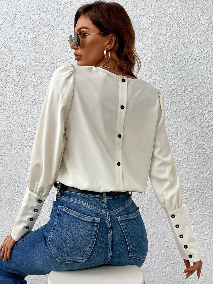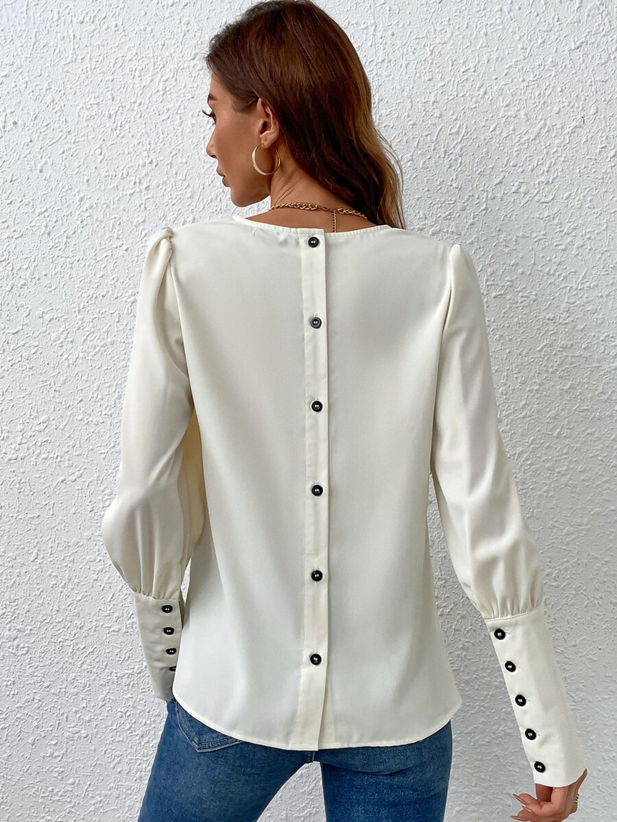 Bluse mit Knopf hinten, Puffärmeln