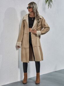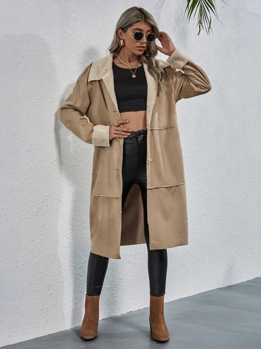 Kunstleder Mantel mit Knöpfen und Sherpa Futter