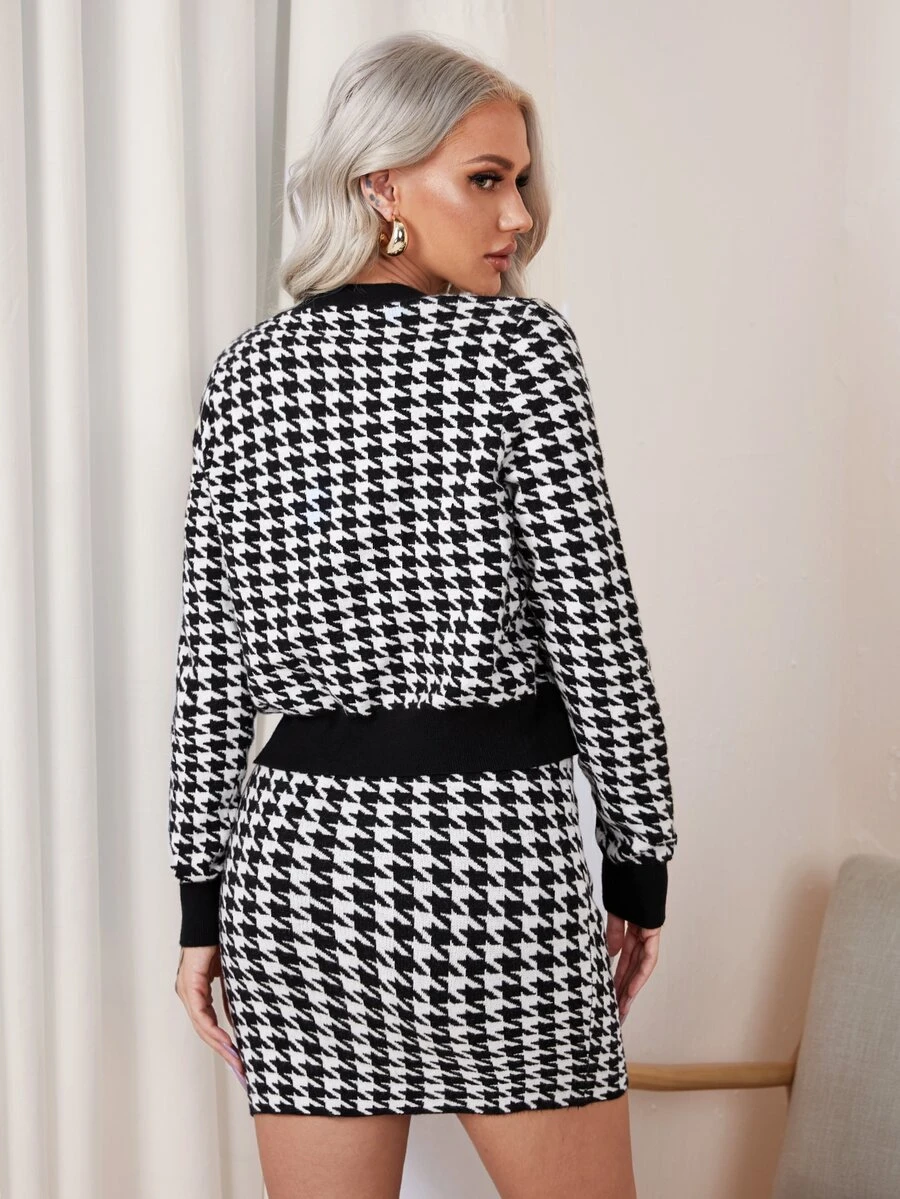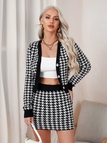 Strickjacke mit Knopfleiste und Hahnentritt Muster & Rock Set