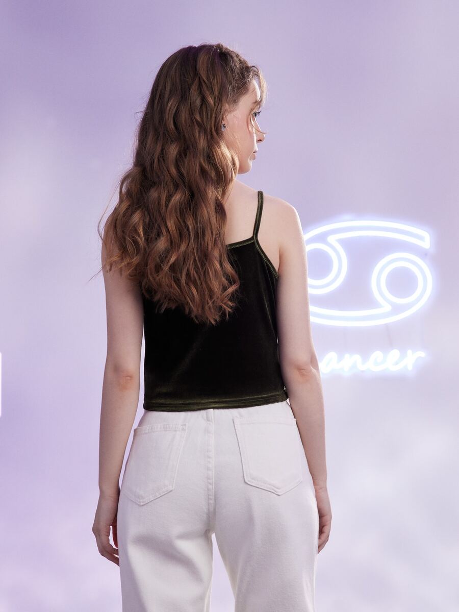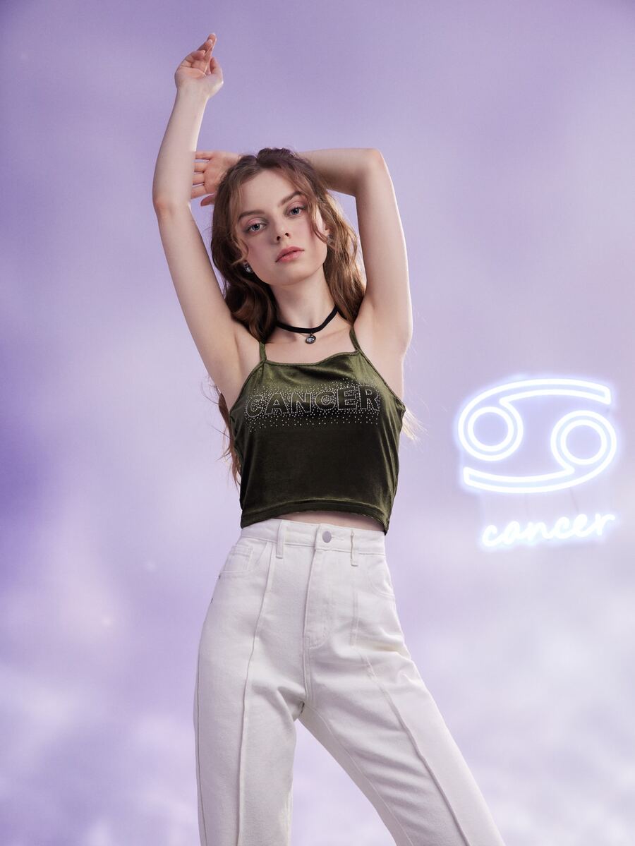 Cancer Crop Cami Top mit Buchstabe Strass, Samt