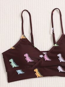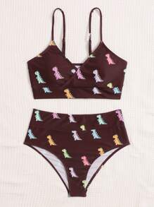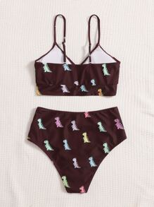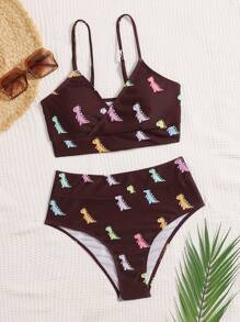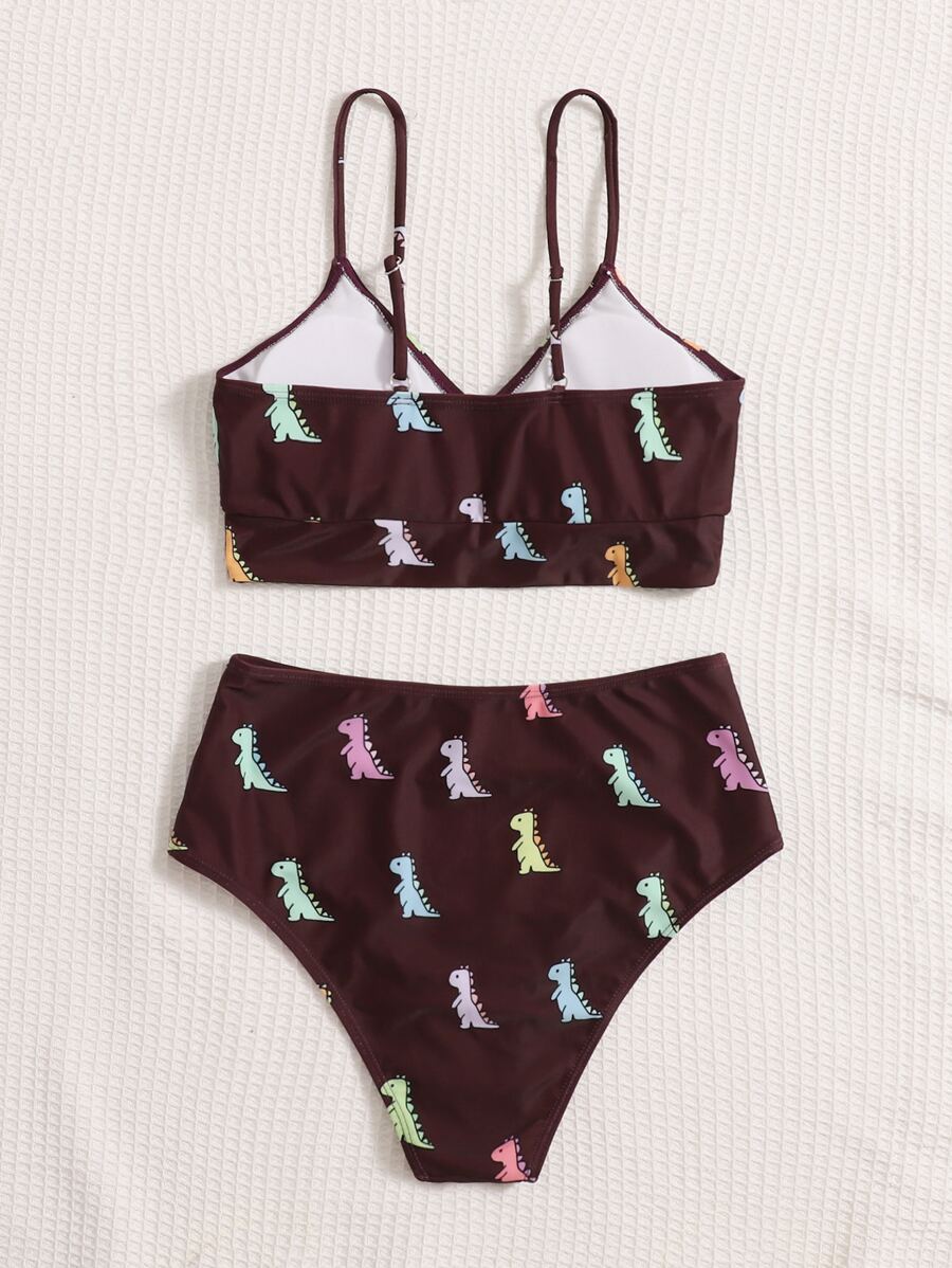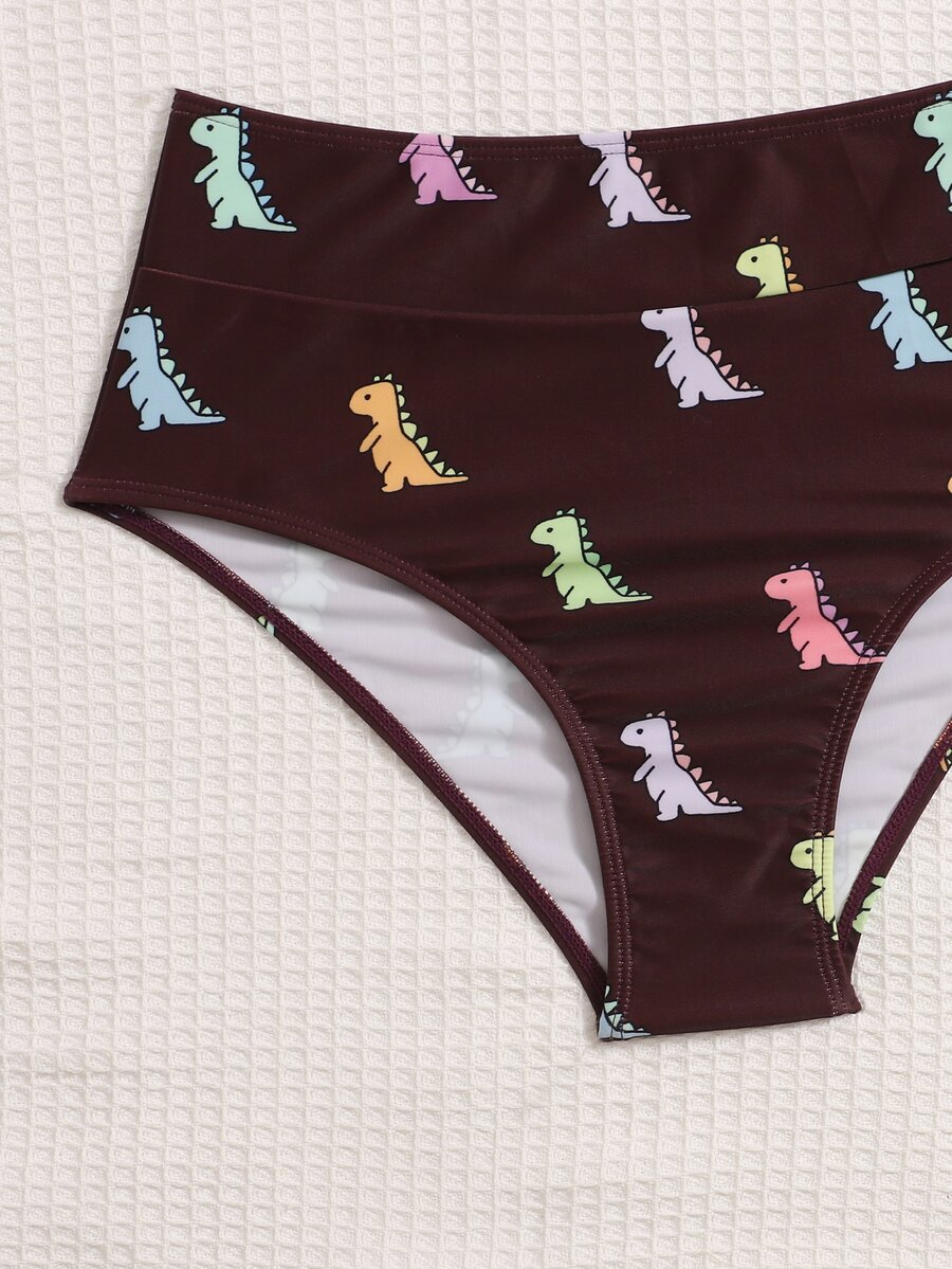 Hoch taillierter Bikini-Set mit Cartoon Dinosaurier Muster für den Sommerstrand