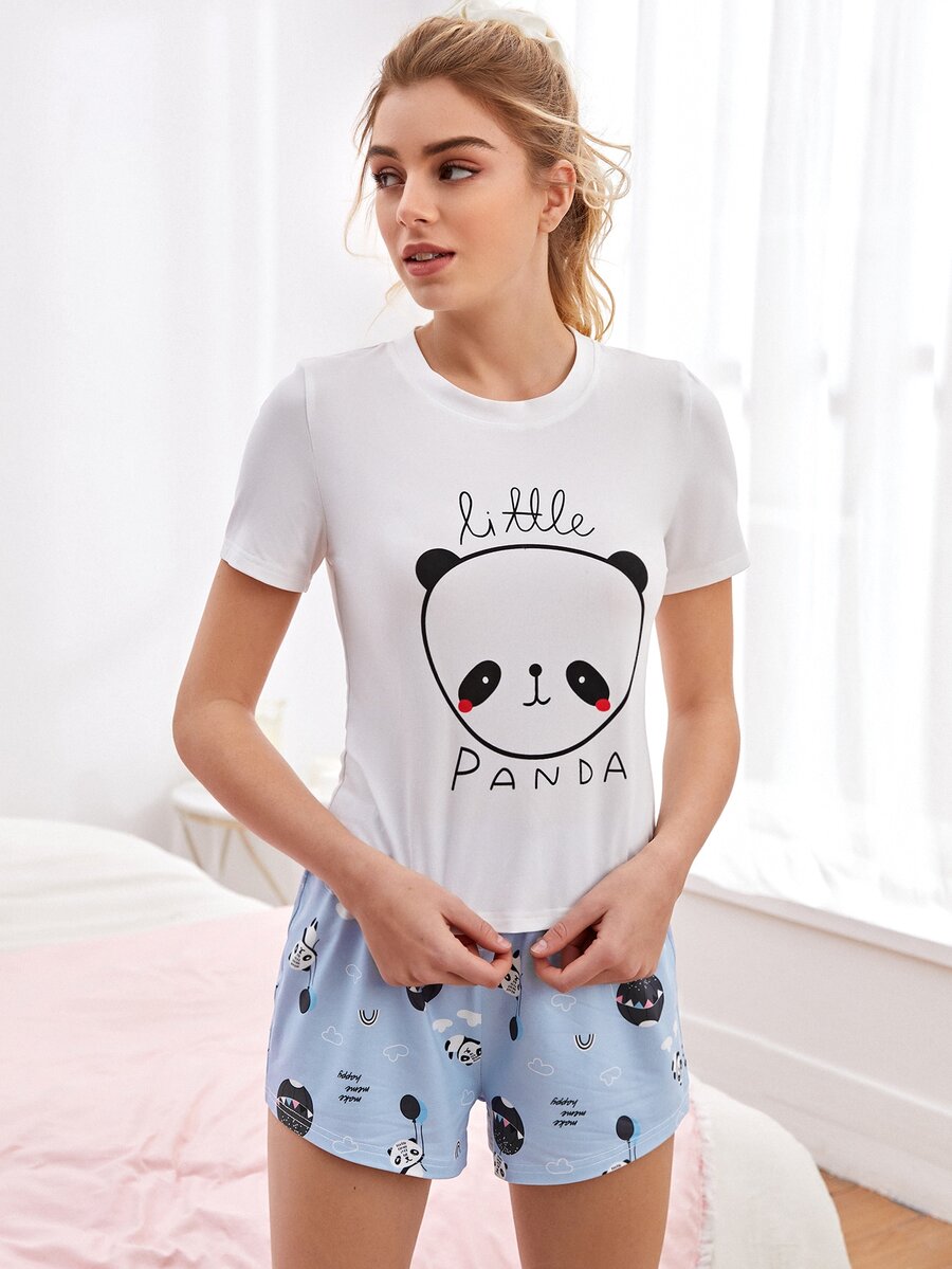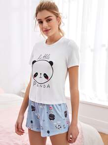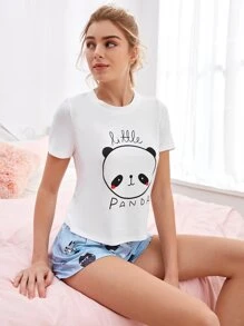 T-Shirt mit Karikatur Grafik & Shorts Pyjama Set