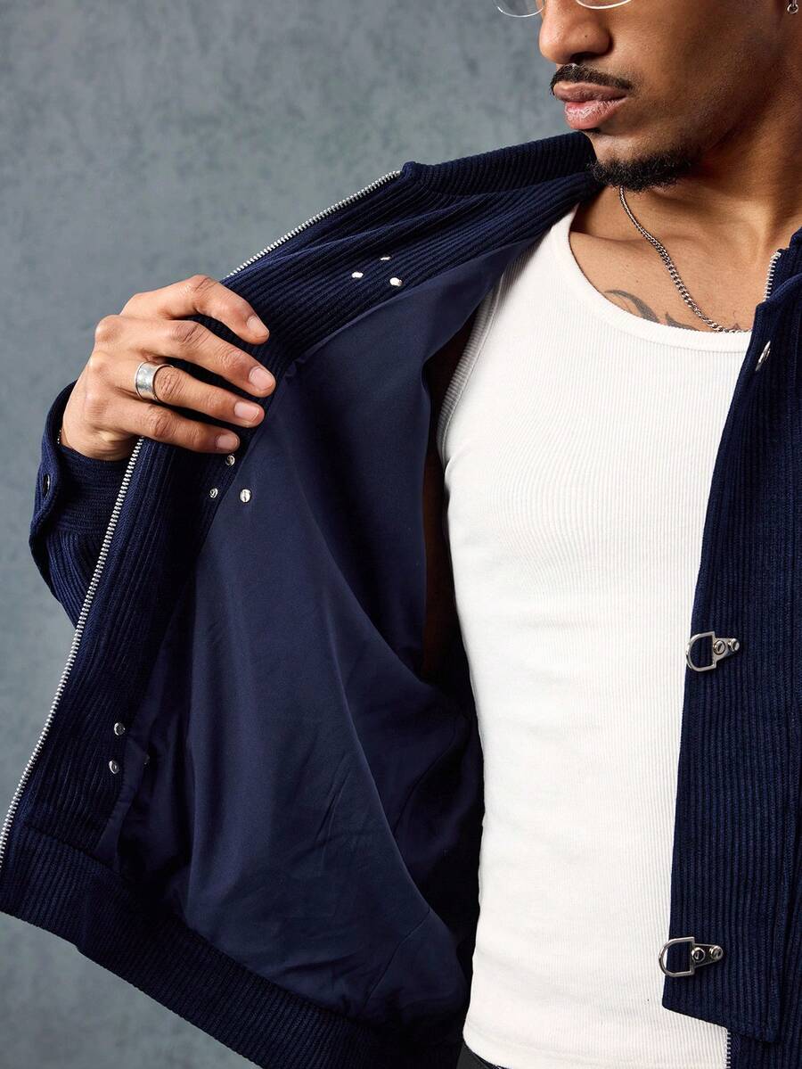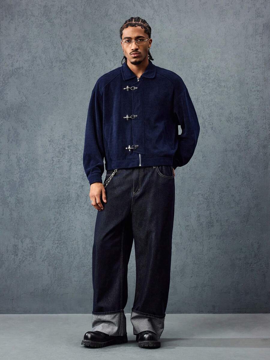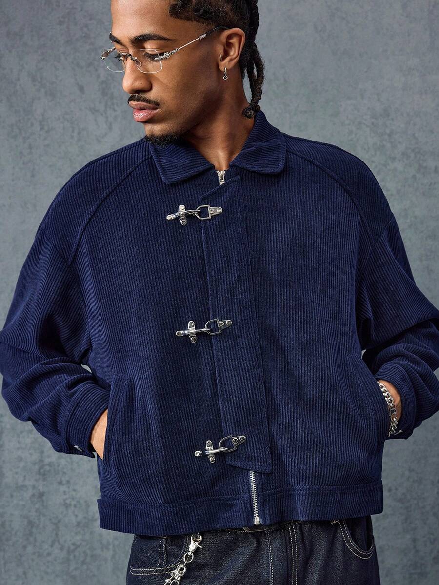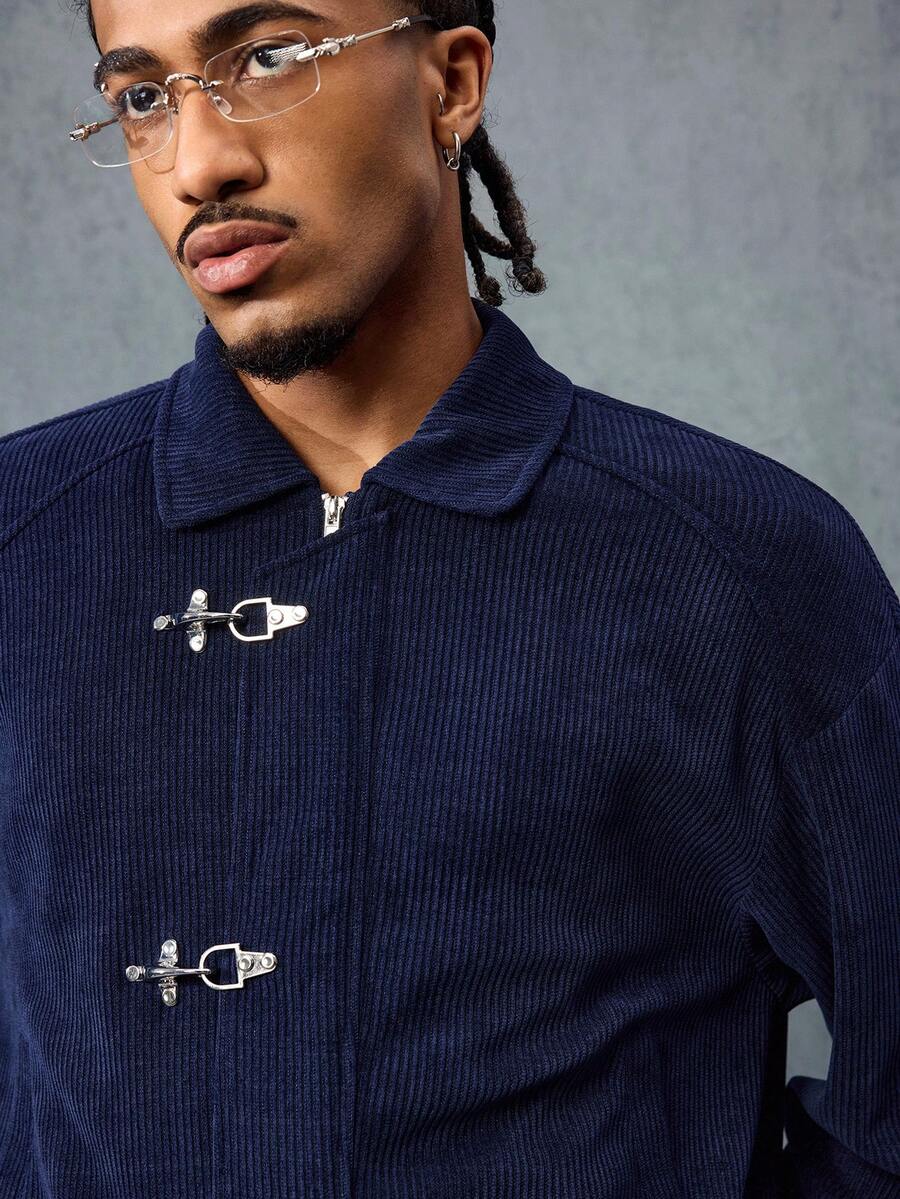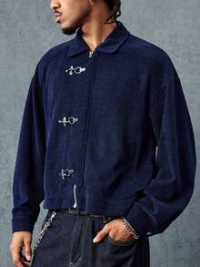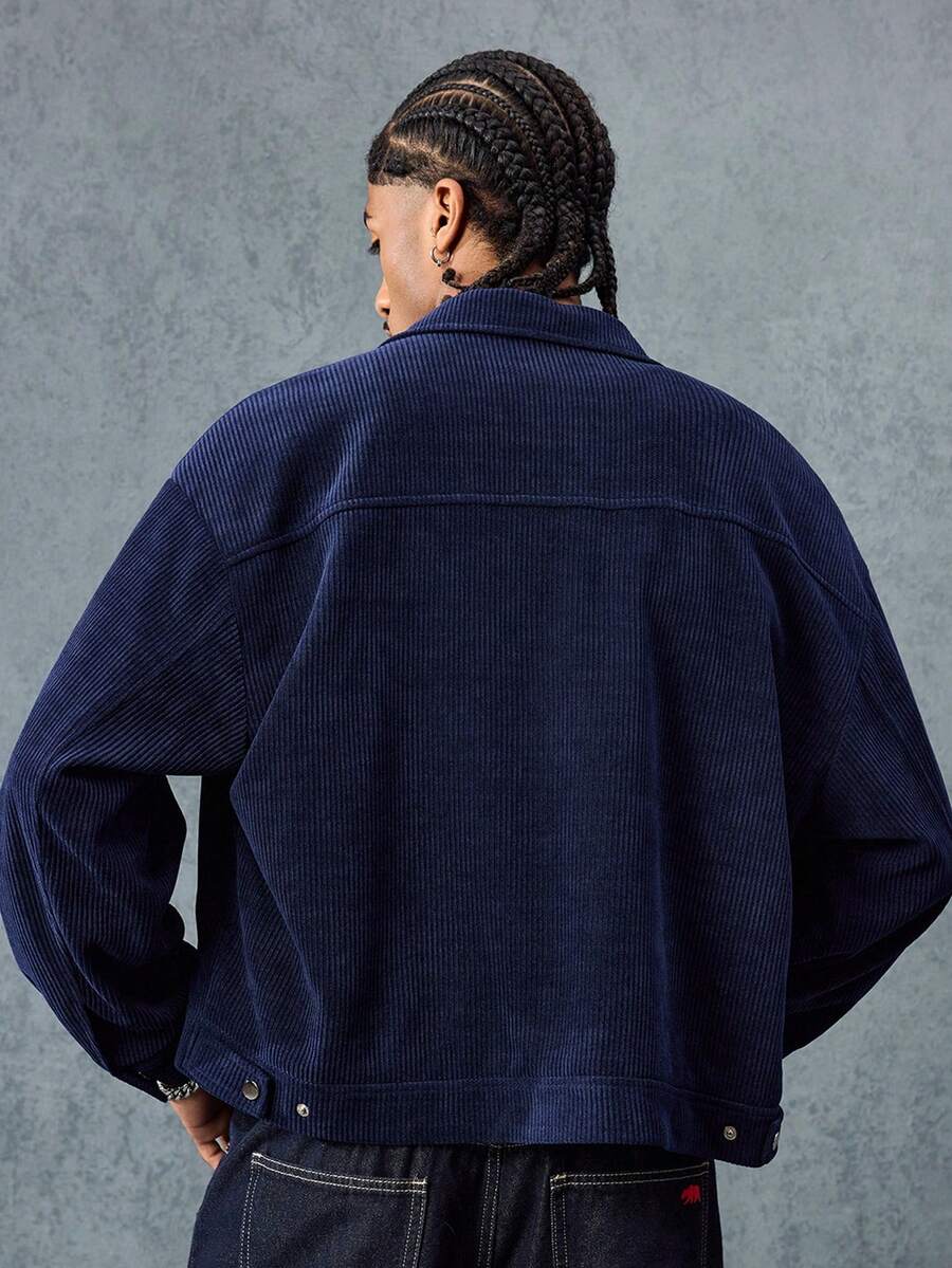 Casual Herren Herbst Langarm Knopf-Cord-Kragen Jacke