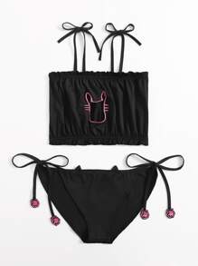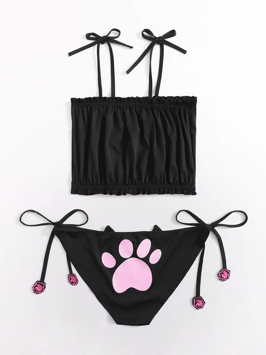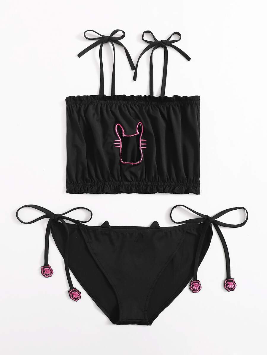 Kostüm Set mit Katze Ausschnitt und Rüschen