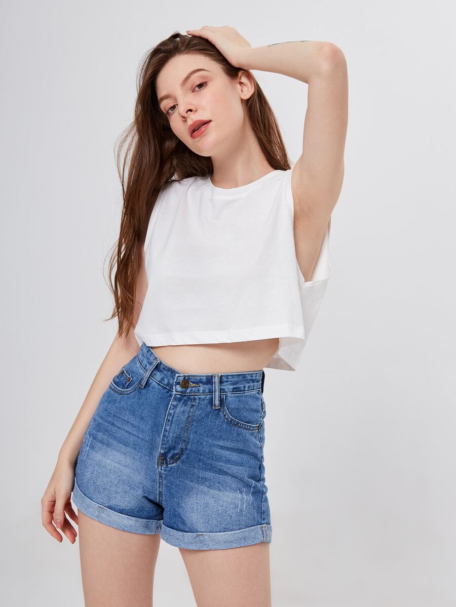 Denim Shorts mit Riss und Wäsche