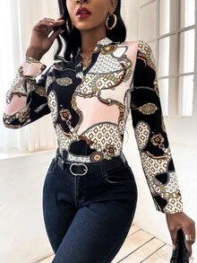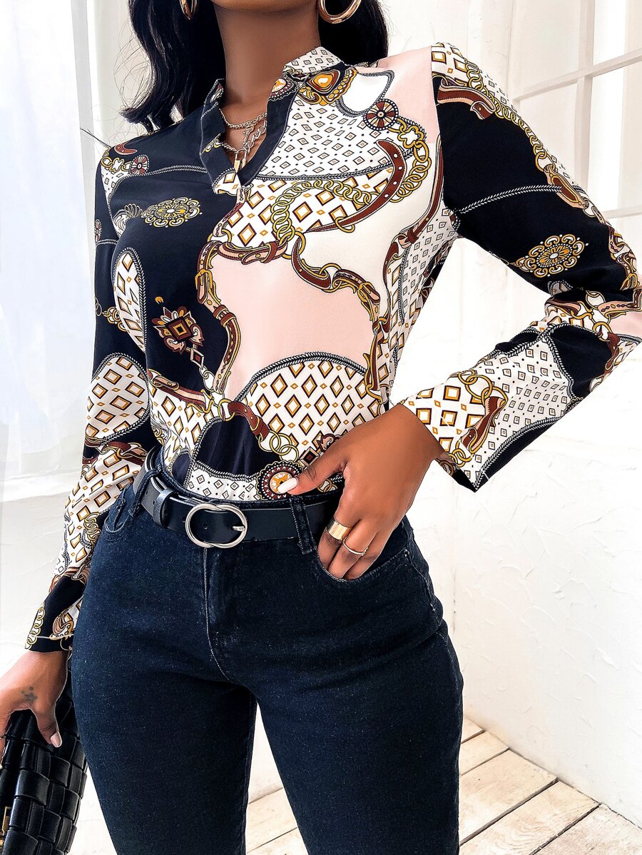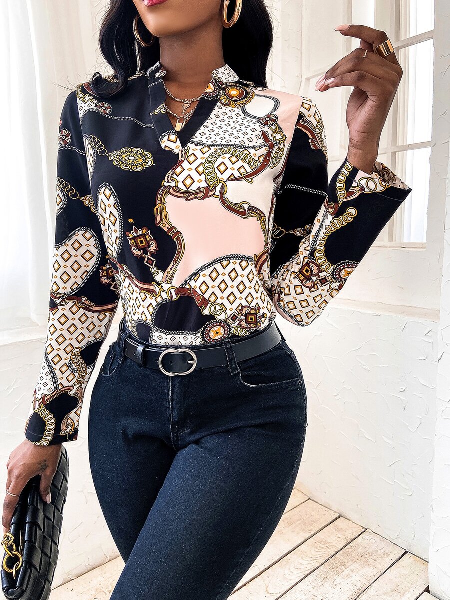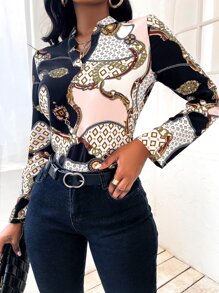 Bluse mit Kette Muster und eingekerbtem Kragen