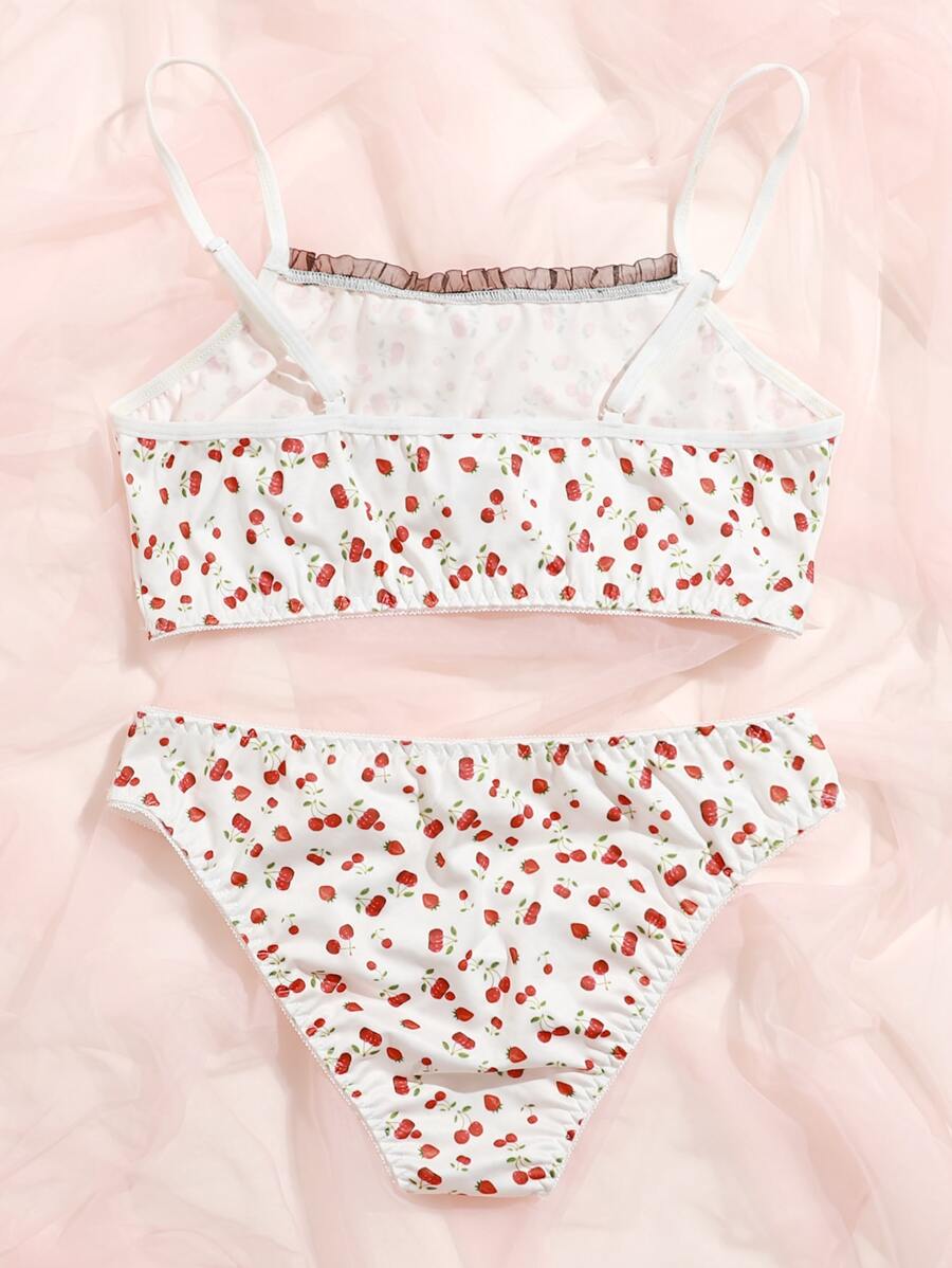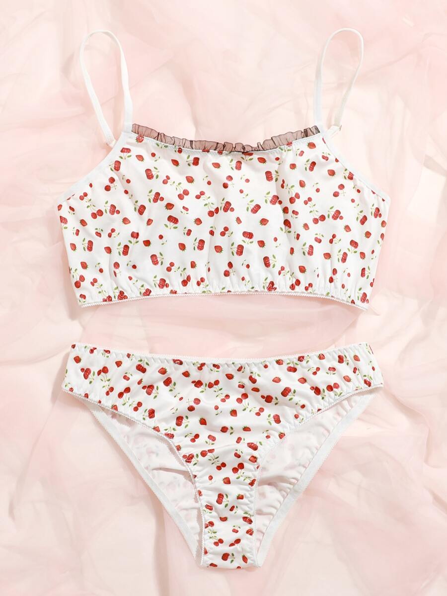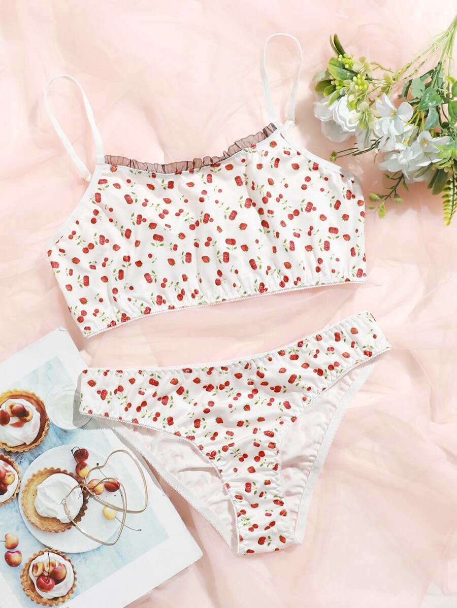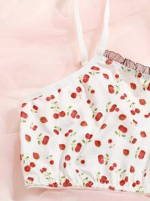 Dessous Set mit Kirschen Muster und Rüschen