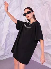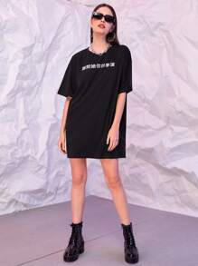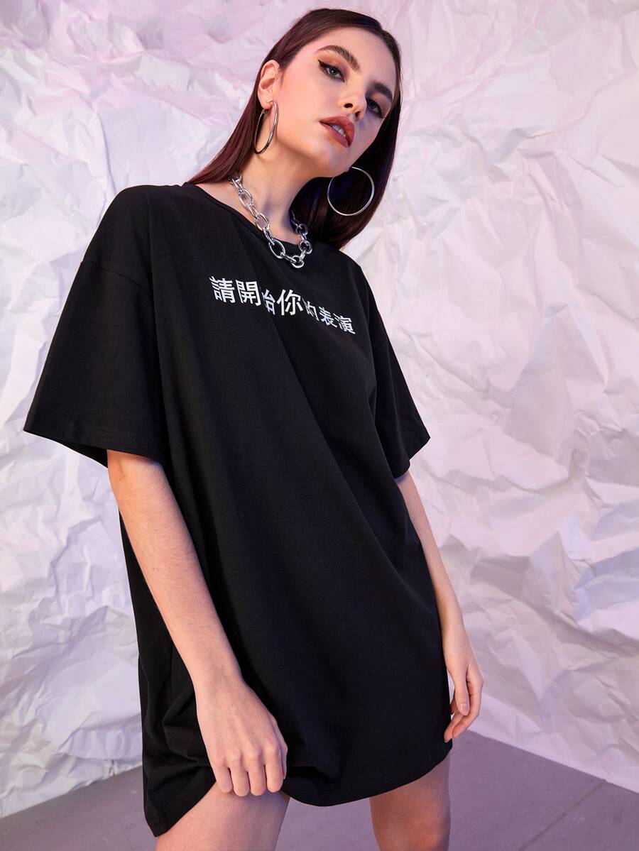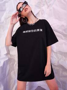 T-Shirt Kleid mit chinesischen Schriftzeichen Muster