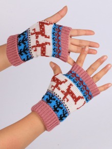 Fingerlose Handschuhe Weihnachten Hirsch Muster