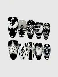 Anime 10 Stück Y2K Retro Stern, Polka Punkt, Gestreift, Pop Art, Grunge, Musiknoten Dekorative Künstliche Nägel, Handgefertigt, Geeignet für Uni, Musikfestivals, Dates usw.