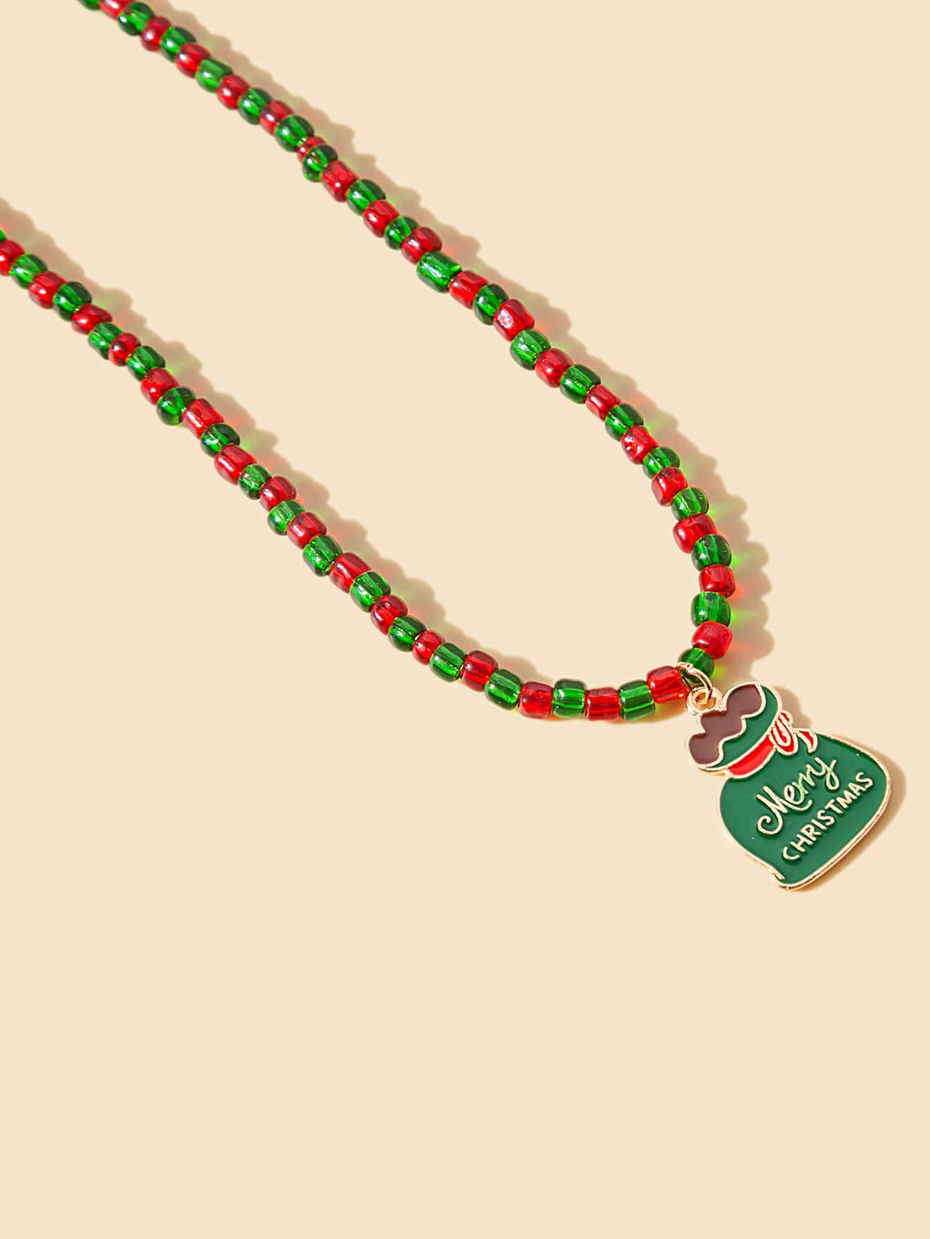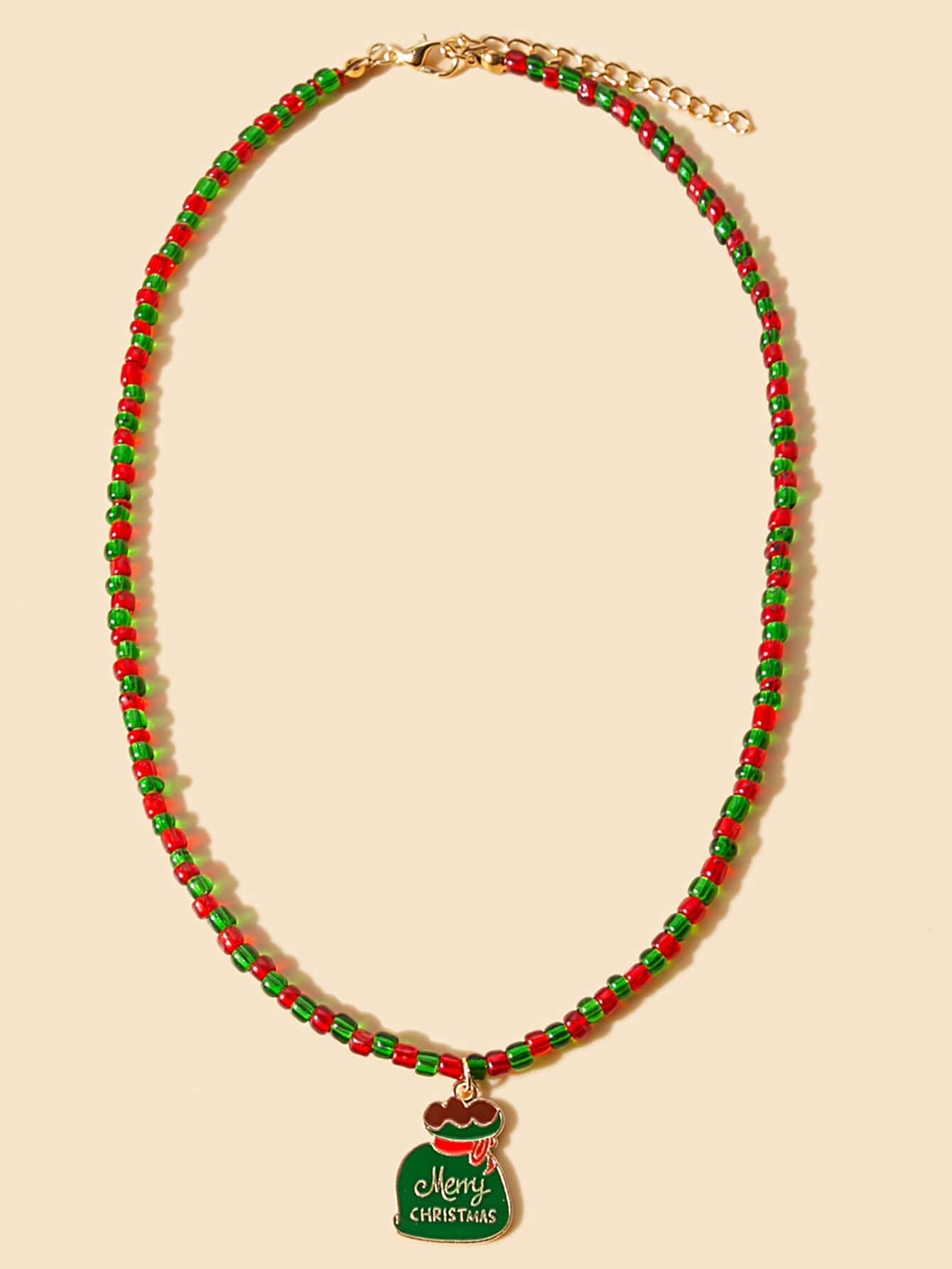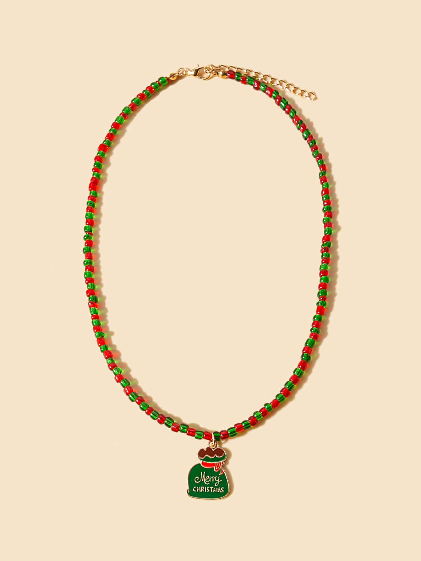 Perlenkette mit Weihnachten Buchstaben Detail, Taschenanhänger