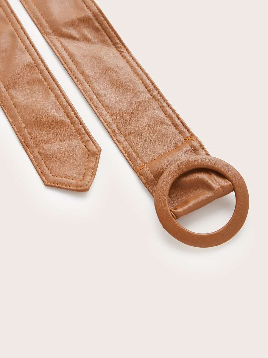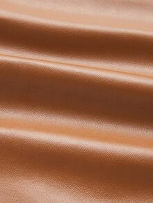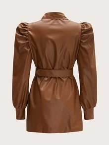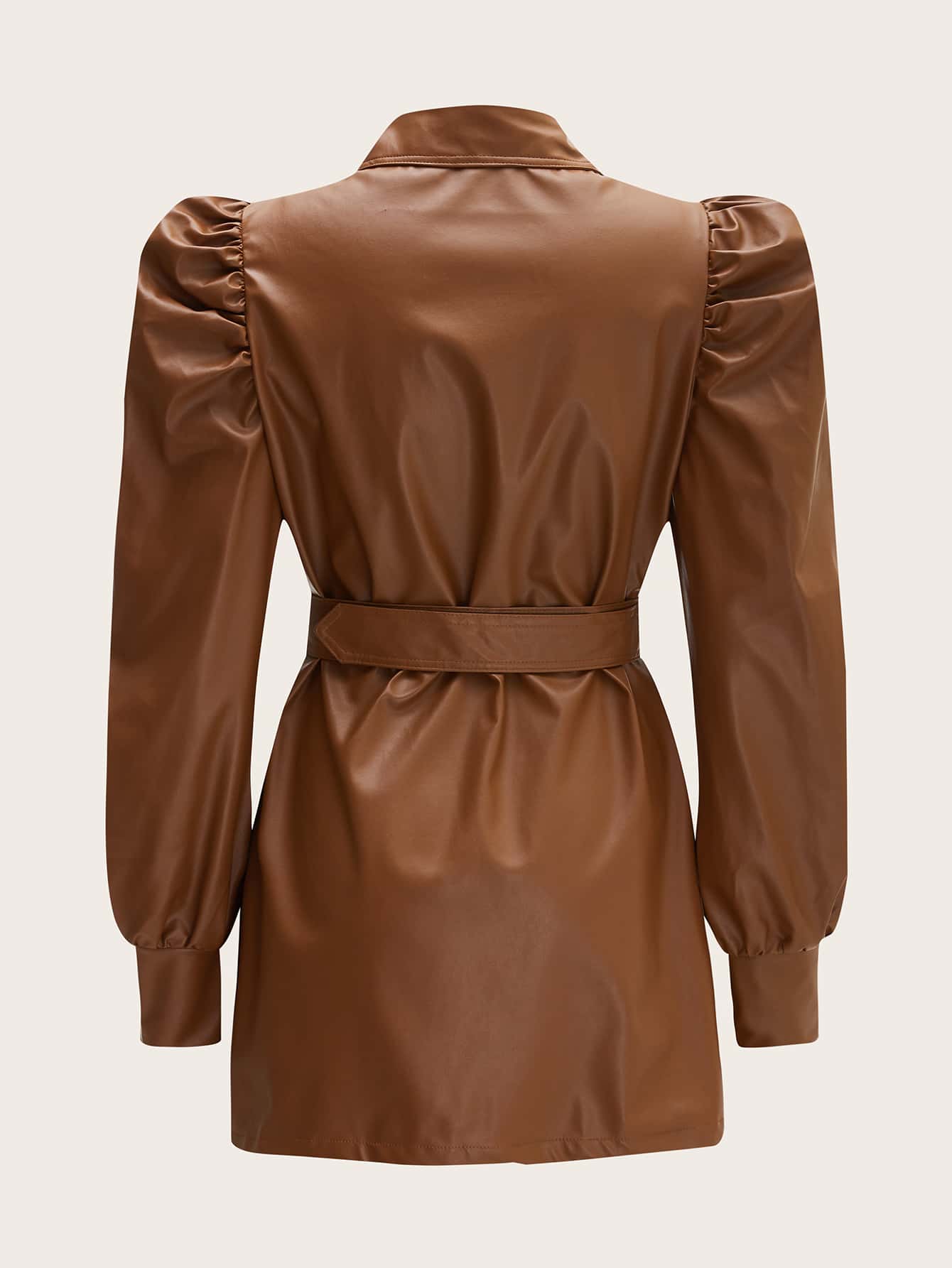 PU Leder Mantel mit Puffärmeln, Taschen vorn, O-Ring und Gürtel