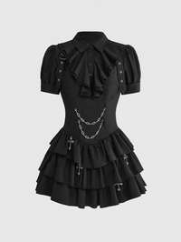 Goth Gotischer Stil Meteorkette, Schwert, Kette, Gabel, bedrucktes Damen Kurzkleid