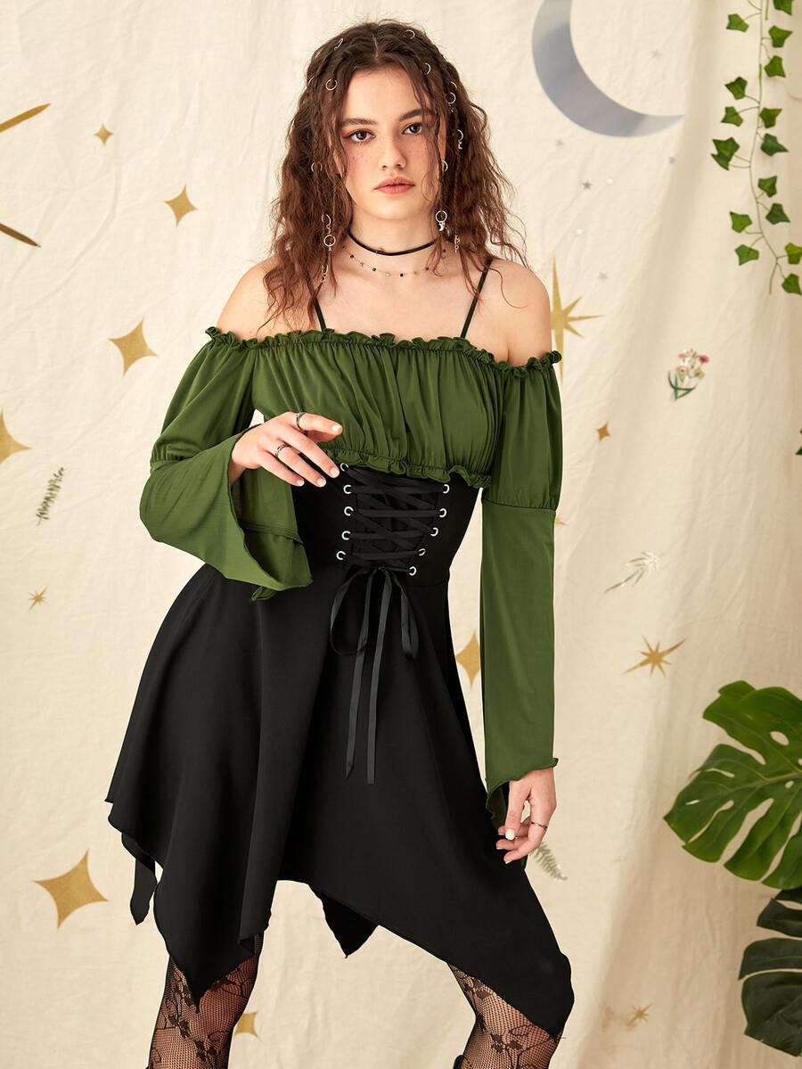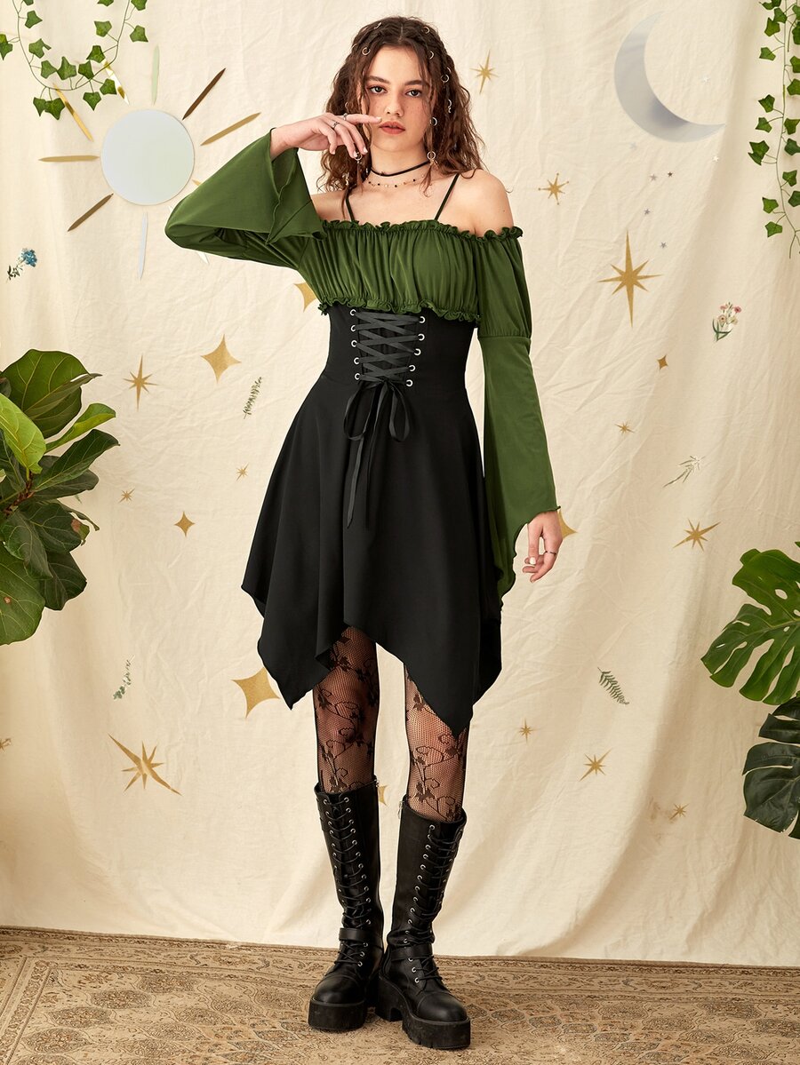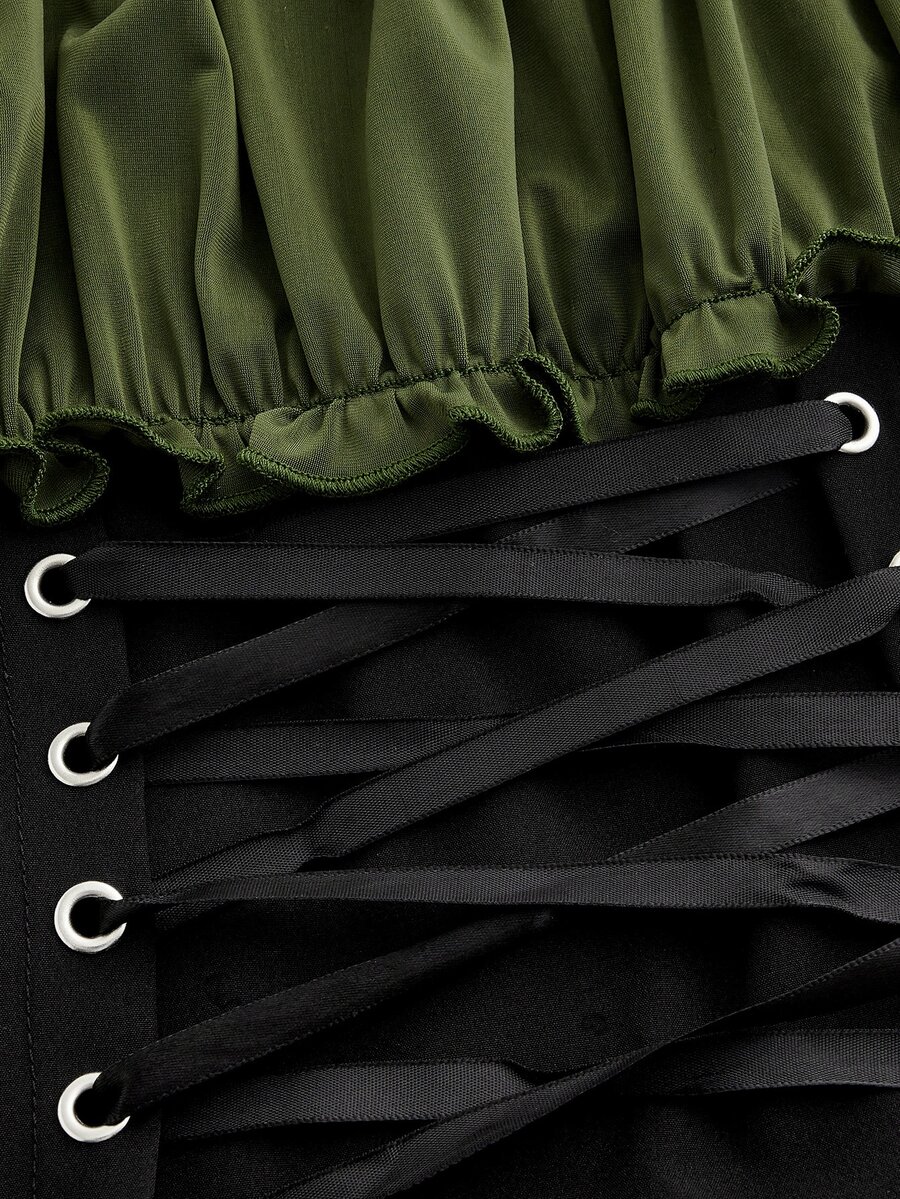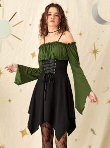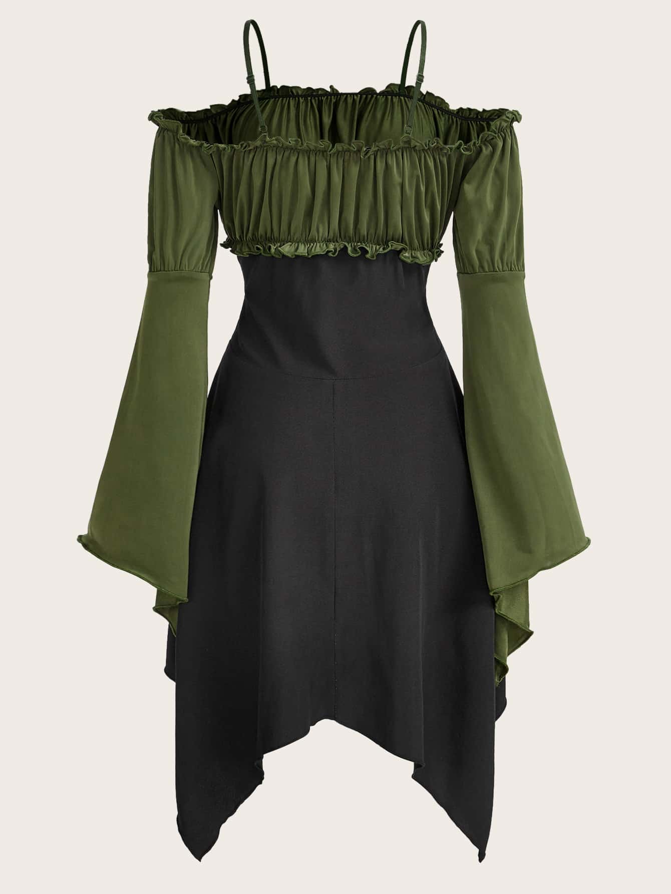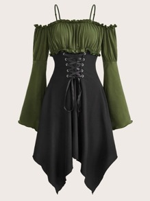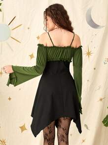Kleid mit Farbblock Band vorne, asymmetrischem Saum