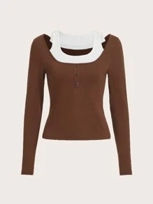 T-Shirt mit Farbblock, 2 in 1 Knopf
