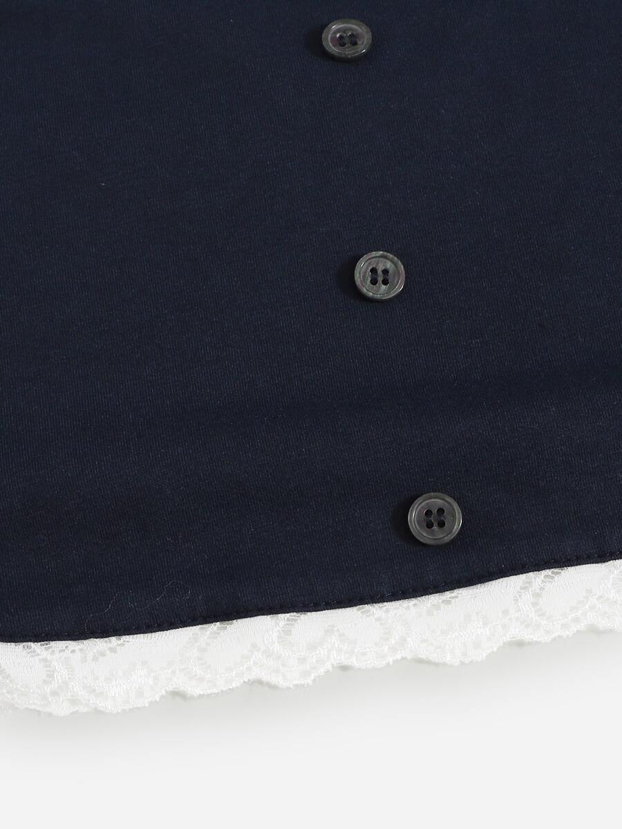 Trägertop mit Farbblock, Öse, Spitze, Knopf vorne