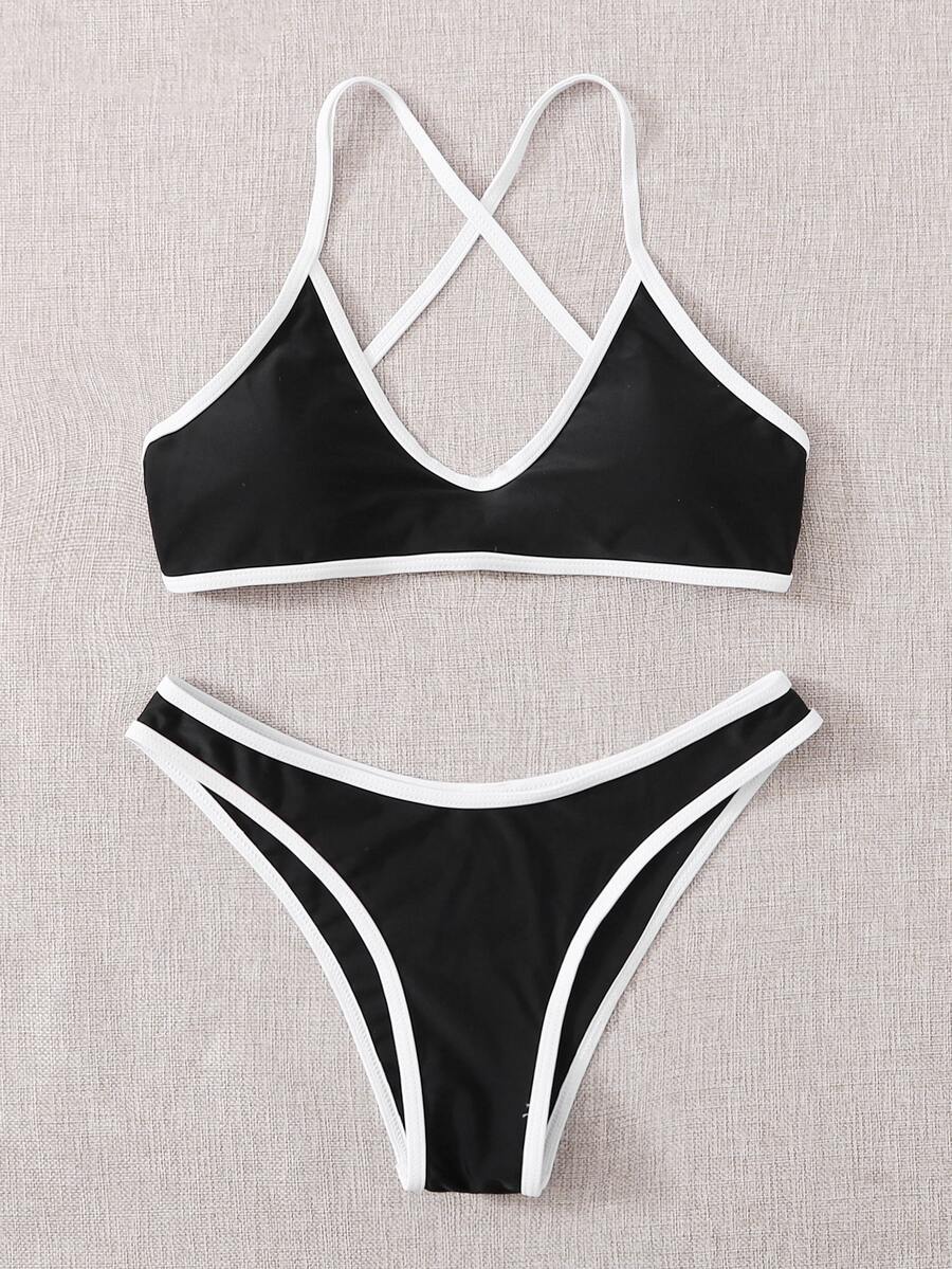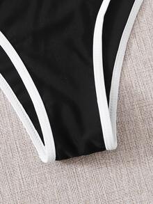 Bikini Set mit hoch geschnittenem Bein und Kontrast-Einfassung für Strand im Sommer