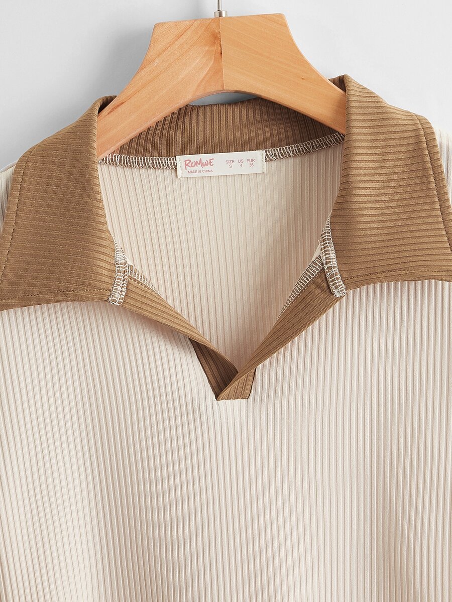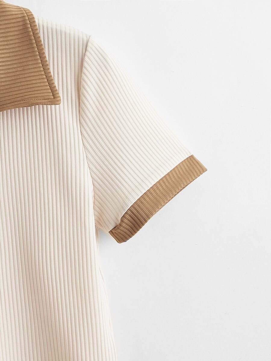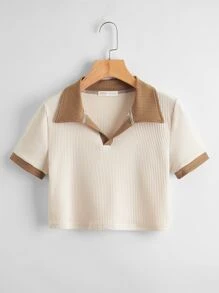 Geripptes Crop T-Shirt mit Kontrast Bindung