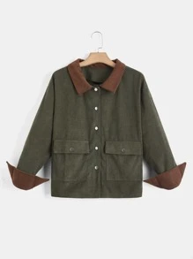 Mantel mit Kontrastkragen, Pattentasche, Drop Shoulder