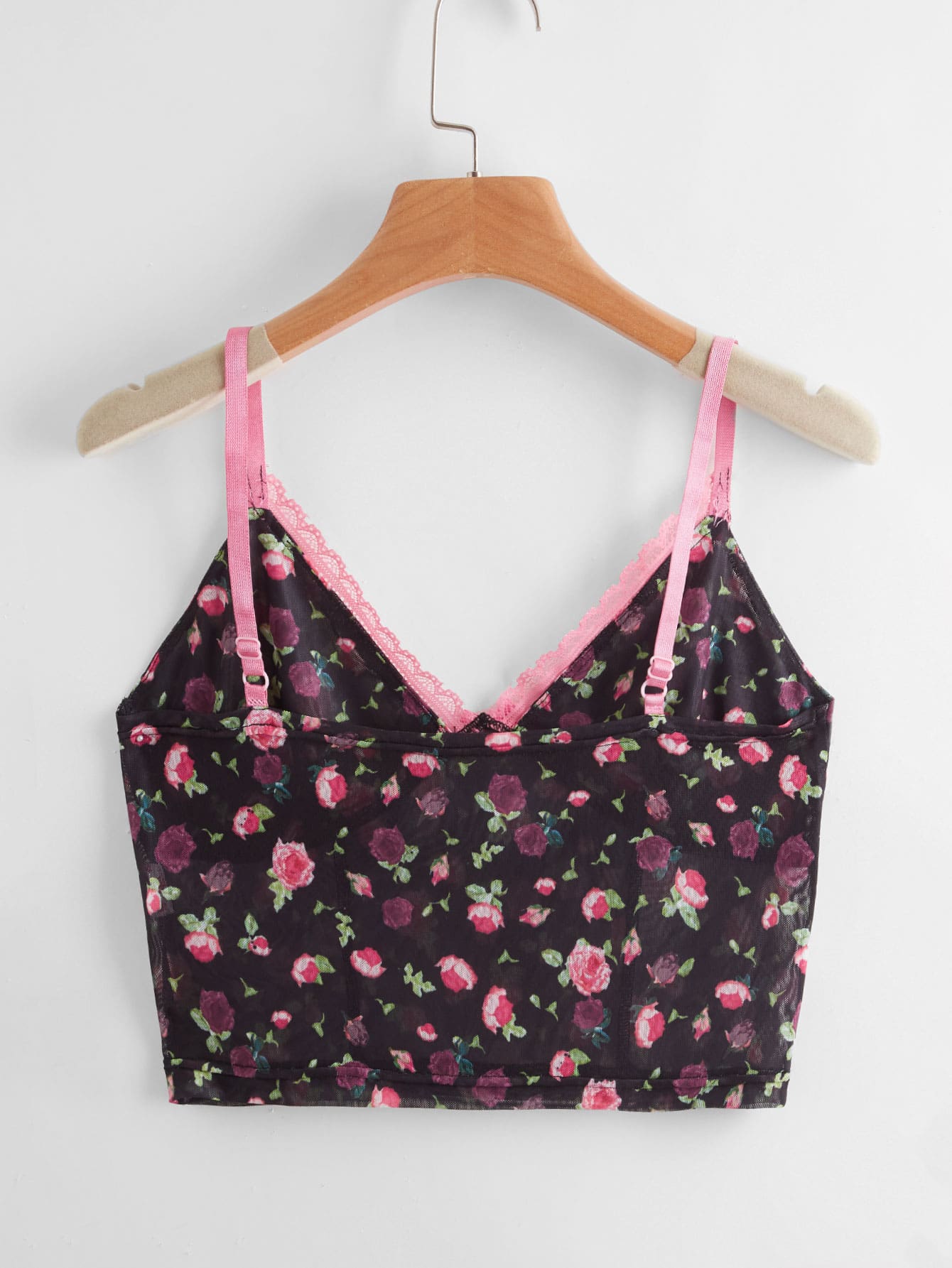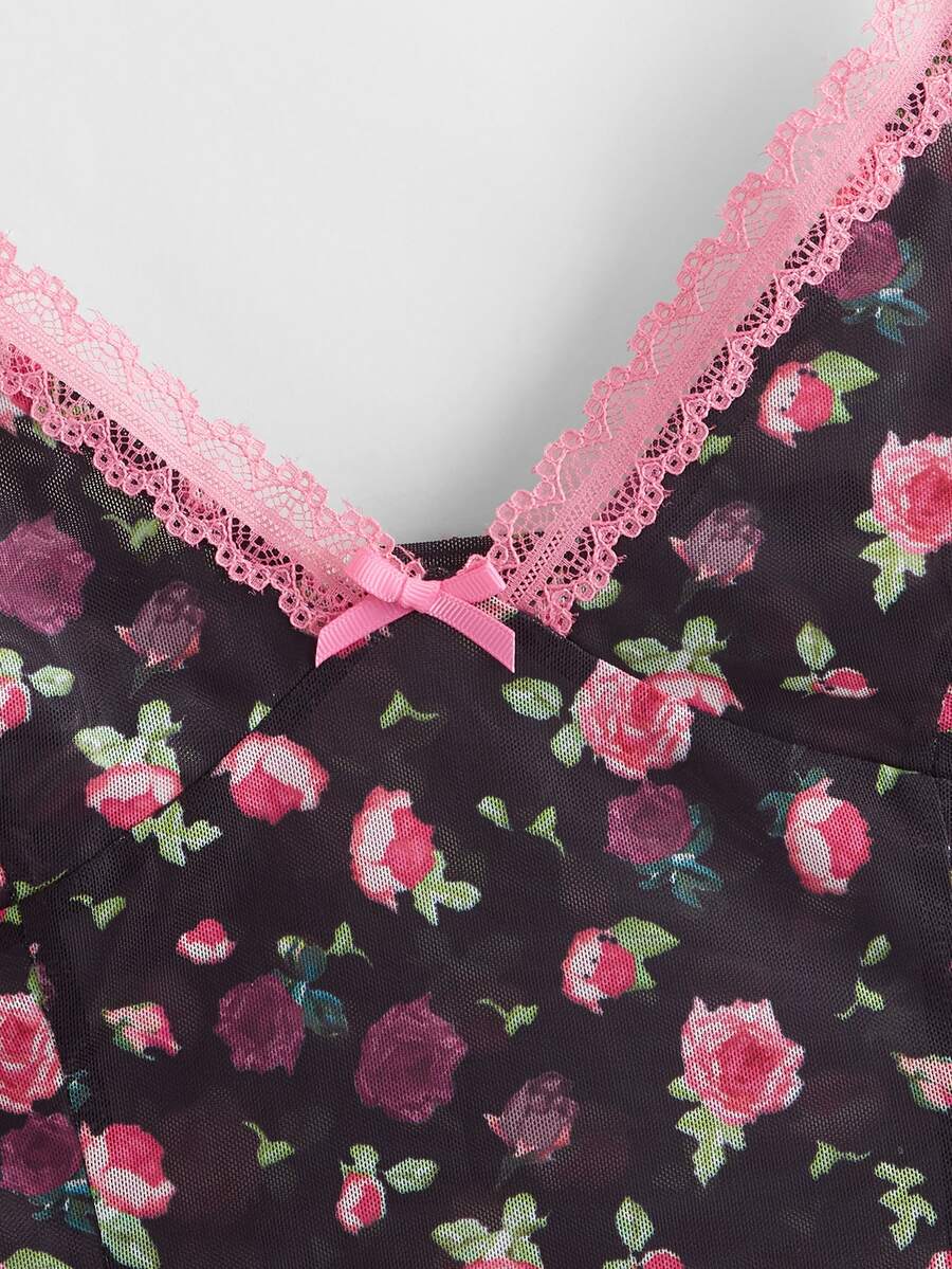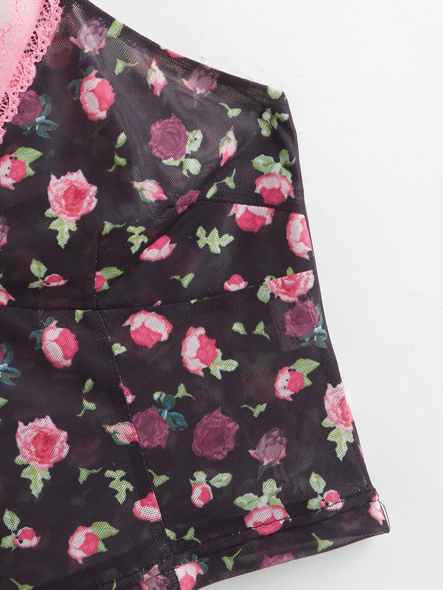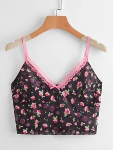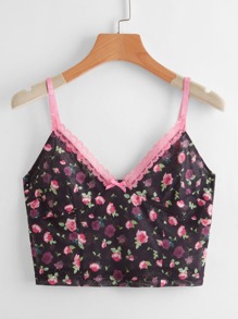 Crop Cami mit Kontrast Spitzen und Blümchen Muster