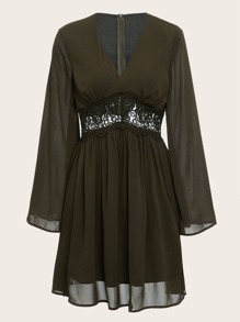 A-Linie Kleid mit Kontrast Spitzeneinsatz
