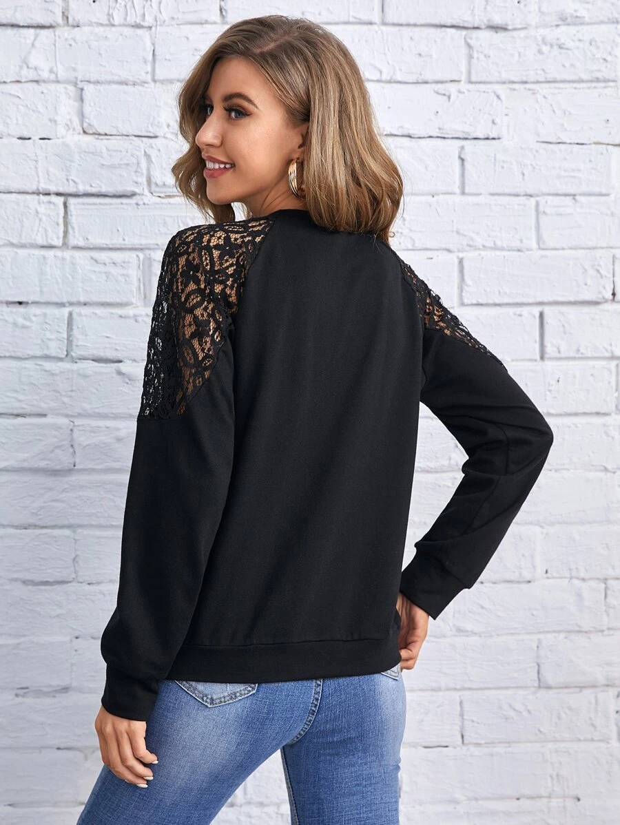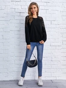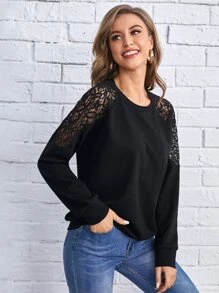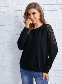 Sweatshirt mit Kontrast-Spitzen und Raglanärmeln