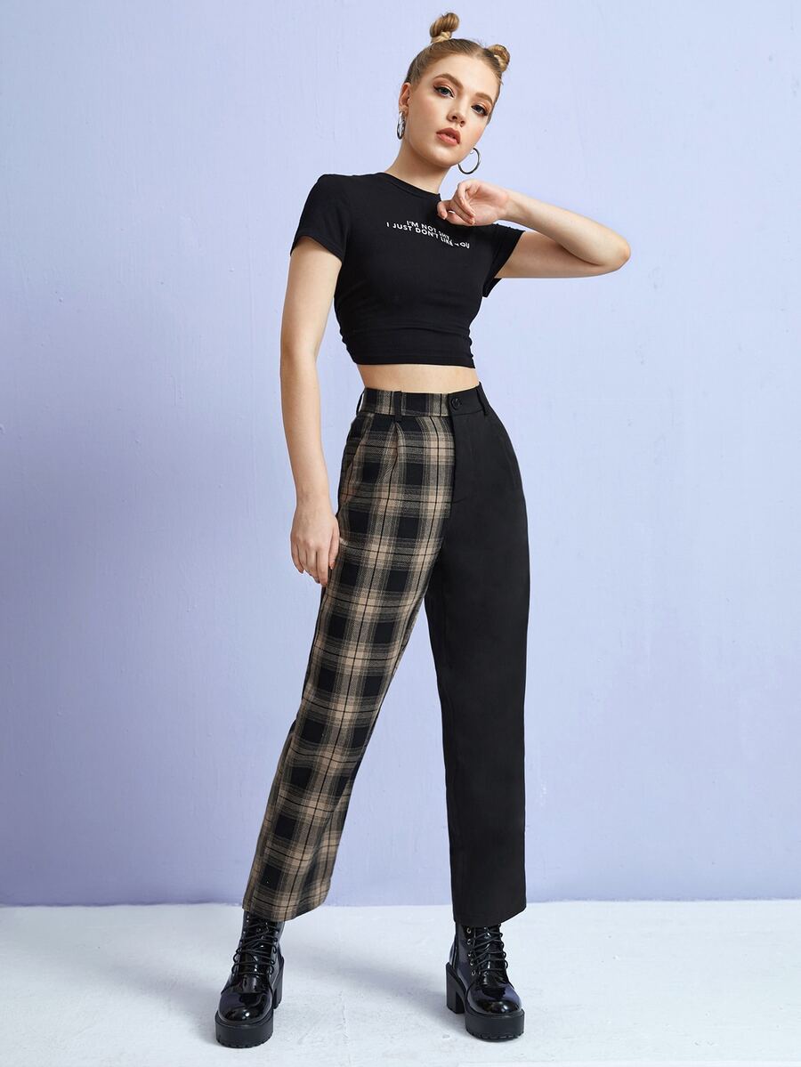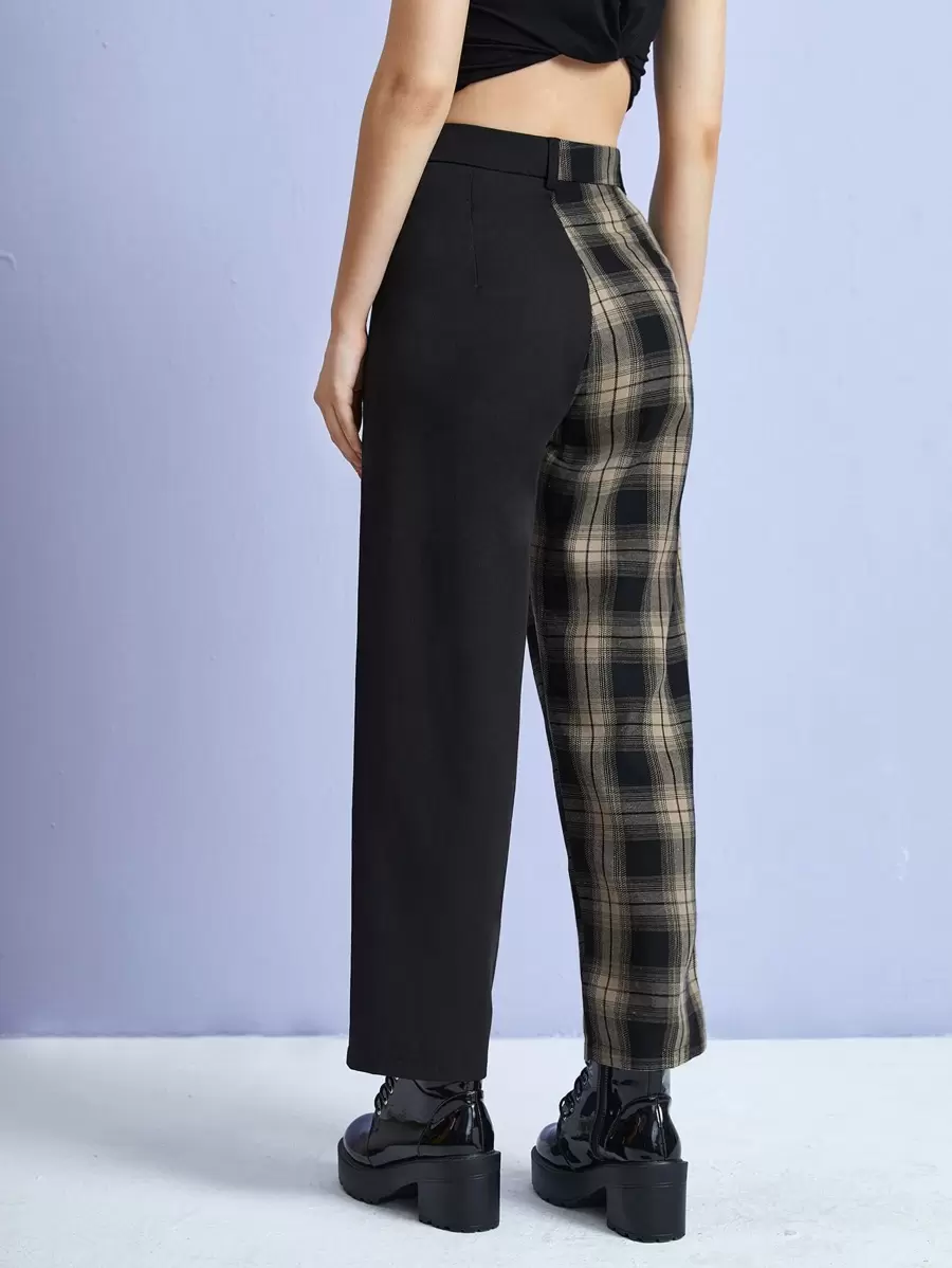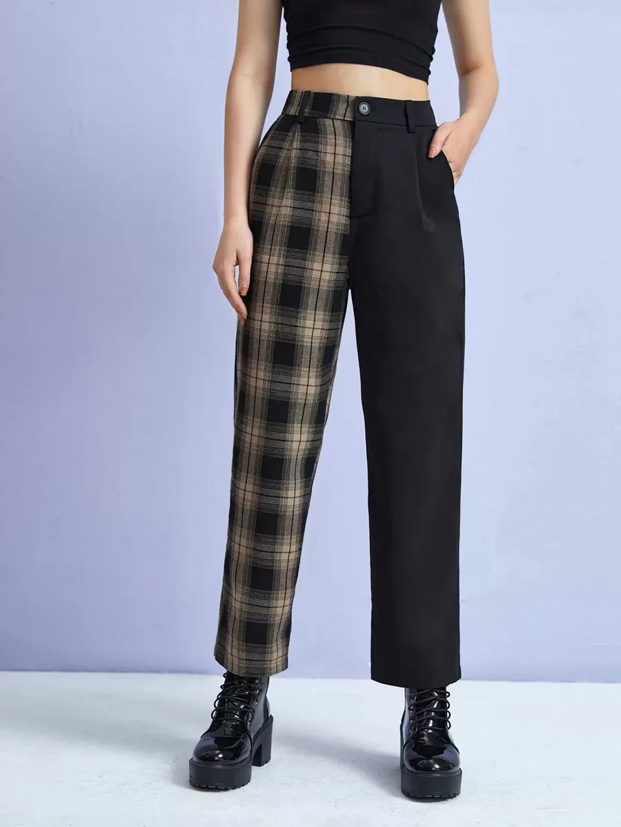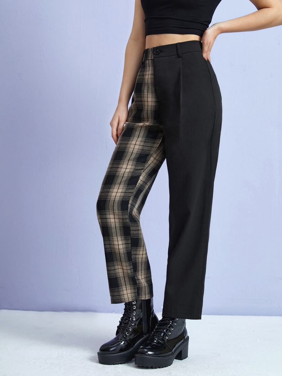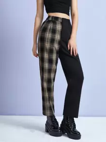 Hose mit Kontrast Plaid Muster