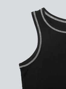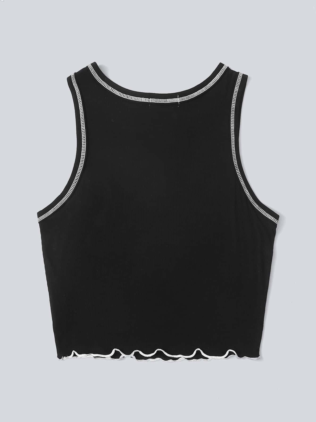 Tank Top mit Kontrast Stich und gewelltem Saum