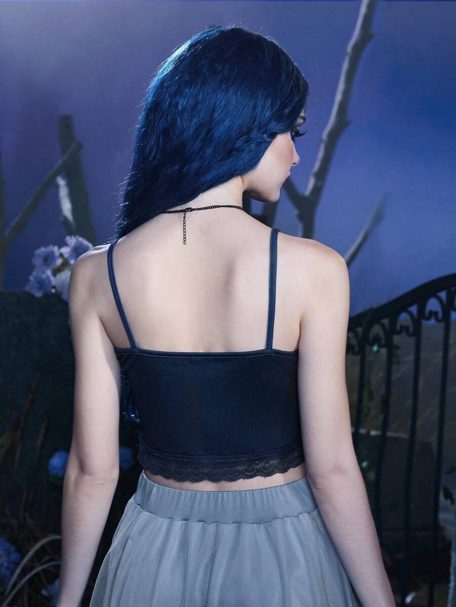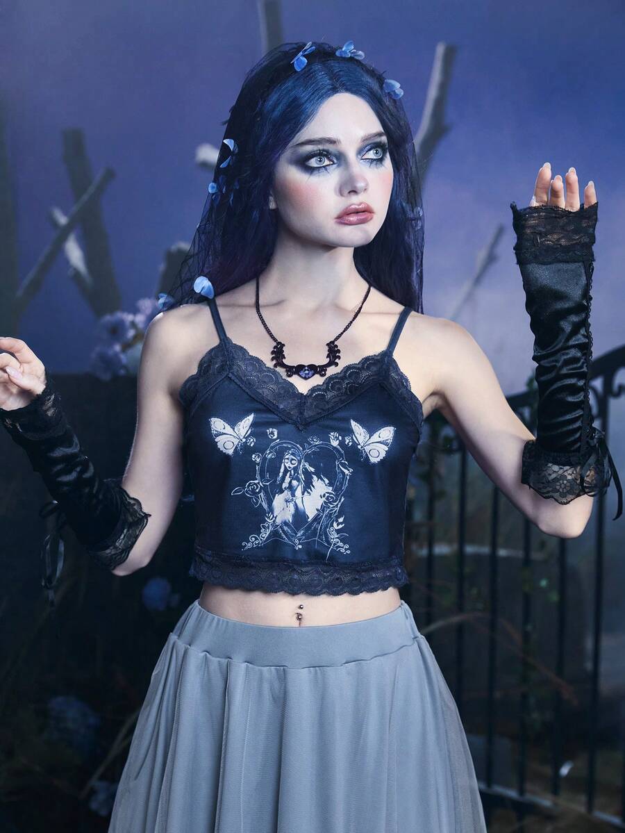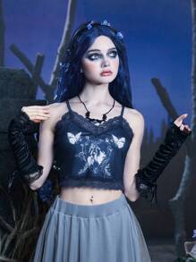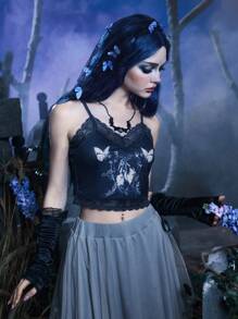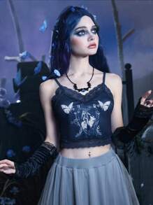 Corpse Bride | ROMWE Cami Top mit Schmetterling Muster, Kontrast Spitzen,