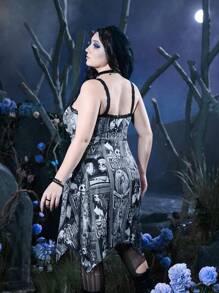 Corpse Bride | ROMWE Cami Kleid mit Figur Grafik, Spitzenbesatz, ohne Korsett