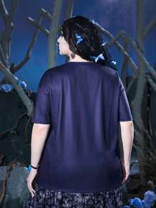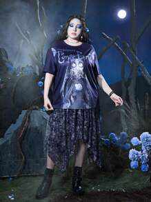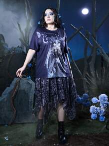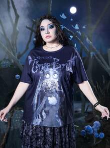 Corpse Bride | ROMWE Drop Shoulder T-Shirt mit Figur & Buchstabe Grafik,