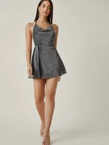 Rückenfreies Kleid mit rundem Kragen, Band hinten und Glitzer