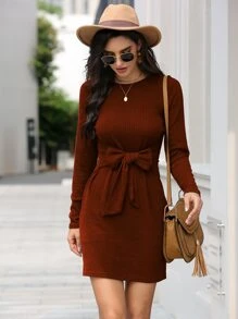 Strick Kleid mit rundem Kragen und Band vorn