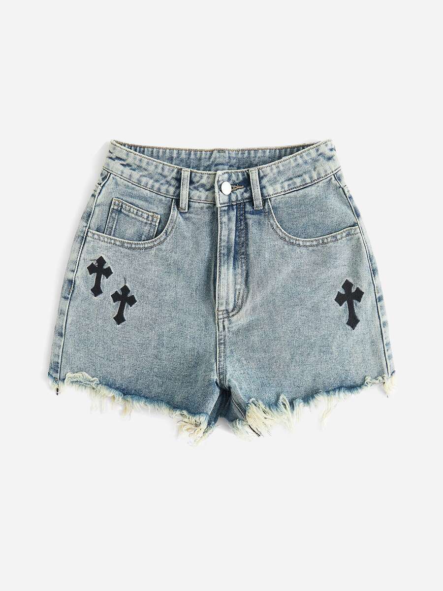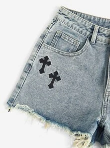 Denim Shorts mit Kreuz, Muster, umgesäumtem Saum,