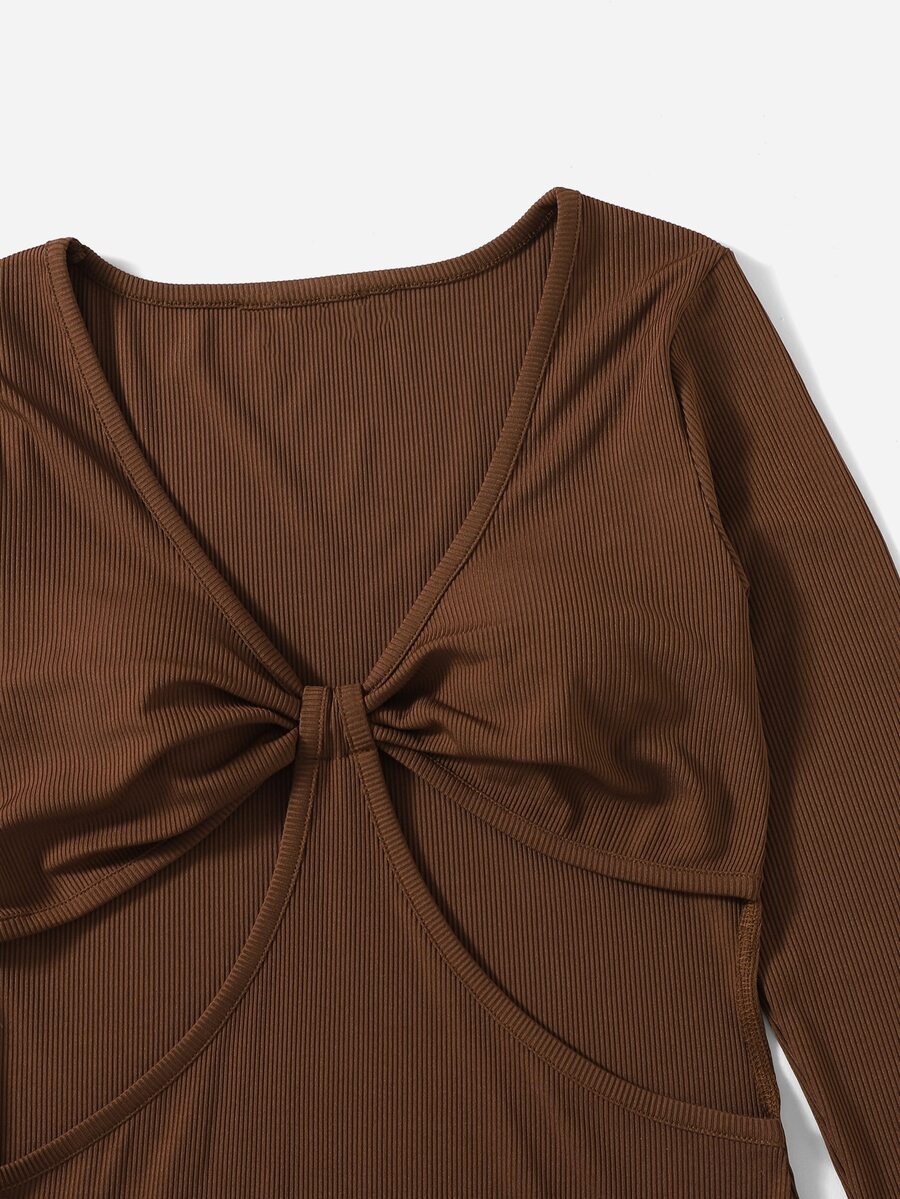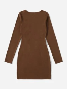 Geripptes Kleid mit Ausschnitt