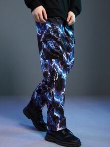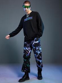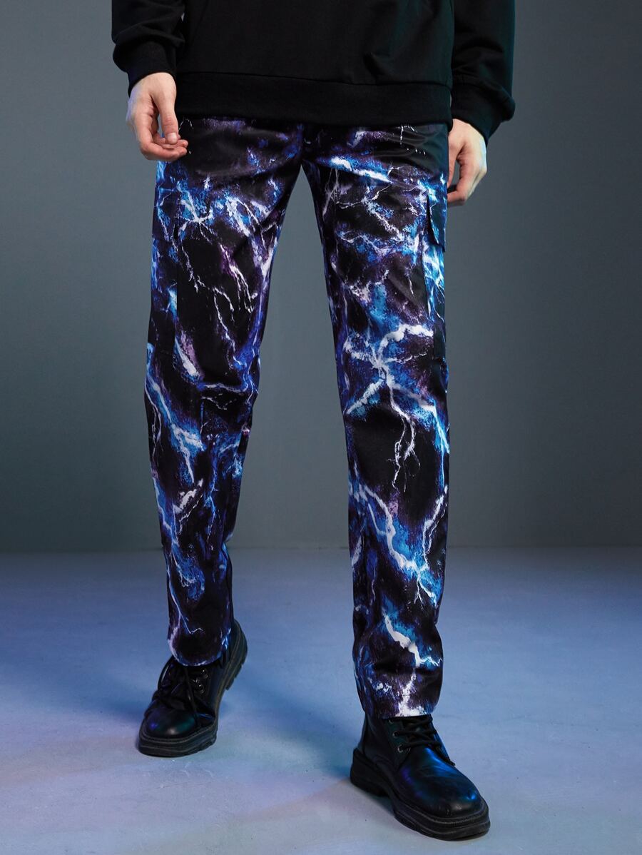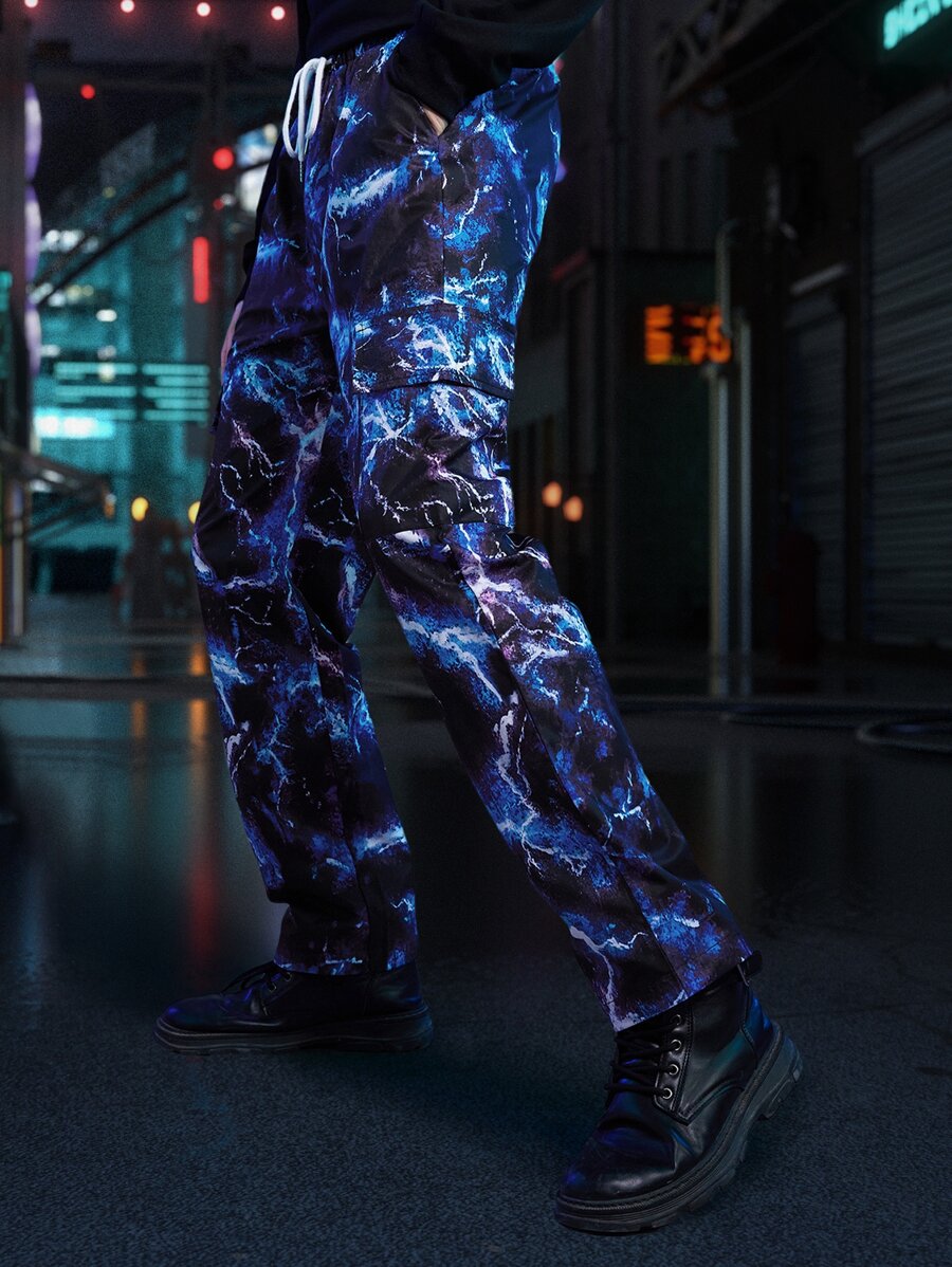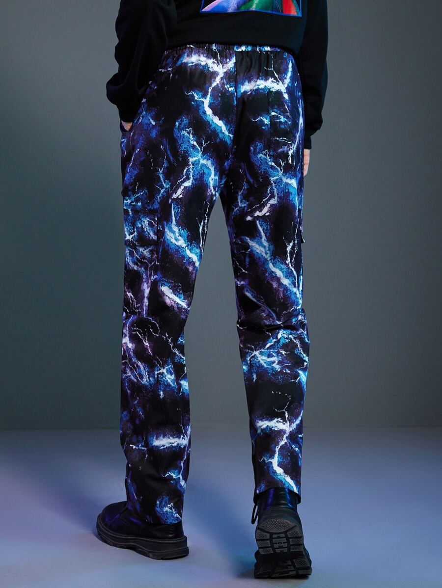 Cyber Life Männer Cargo Hose mit Blitz Batik, Tunnelzug